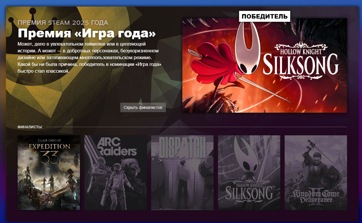 >>10029622 (OP) ну вроде лучший саундтрек взяли) а так силксонг тоже неплохая игра, ей не жалко проиграть тем более после исторического рекорда девяти наград на тга