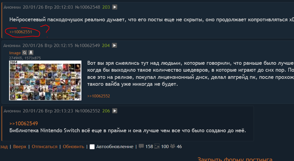 >могу до бамплимита насрать вебмками Ты серьезно думаешь, что тред про прохождения игр нуждается в твоем сольном перформансе с вебмками до лимита? Это не /b/, анон, тут люди делятся впечатлениями, а не ждут, пока ты зафлудишь ленту кринжовыми роликами, чтоб твой пост не сдох. Бамплимит - для мертвых тредов, а не для твоего эго.