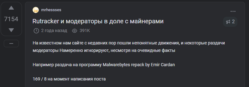Свидетели говняка в репаке СОФТА у волшебника почти 3 года назад - а ещё пруфы будут? Или из-за одного случая всё, доверие площадке утеряно? Вы как плоскоземельщики, цепляетесь за единственный аргумент и им пытаетесь абсолютно всё доказать. Вам больше крыть нечем. Только одним единственным случаем, который ещё и с игрухами не связан