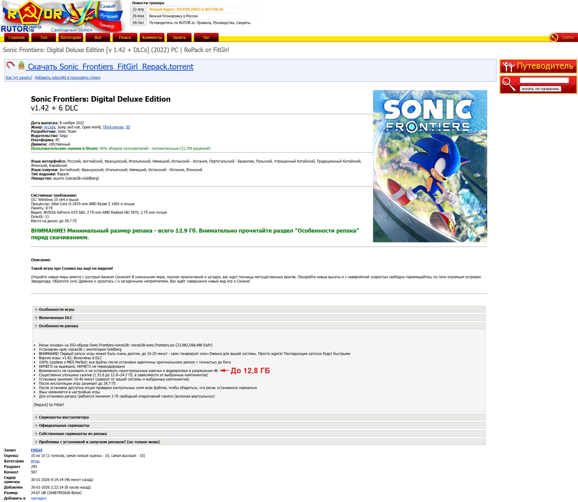 Порешали бы на рутрекере, чтобы была 1 раздача - 1 игра в виде portable версии, причем раздача как бы от самого рутрекерахотя это противоречит концепции торрентов, я понимаю. Во первых это решило бы тему с разобщенными сидерами личерами (а их количество падает из-за блокировок, реально меньше стало), во вторых было бы больше доверия, в третьих репаки уже такая себе тема, качать на ссд чтобы потом еще установить, двойная ебка. Можно было бы еще сделать как бы один единый архив со всеми торрентами игрулек, чтобы одним разом скачать его и можно было в любой момент сесть на скачку и ты был уверен, что робить будет.