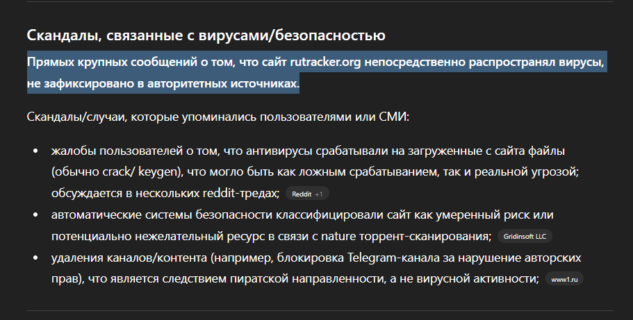 >>10085729 К слову. Нейрозалупа говорит, что крупной шумихи про страаааааафные вирусы на рутрекере замечено не было. Эти слова кстати подтверждает опыт армии пиратов, и мой в том числе. ИТТ никто с говняком на рутрекере не сталкивался.