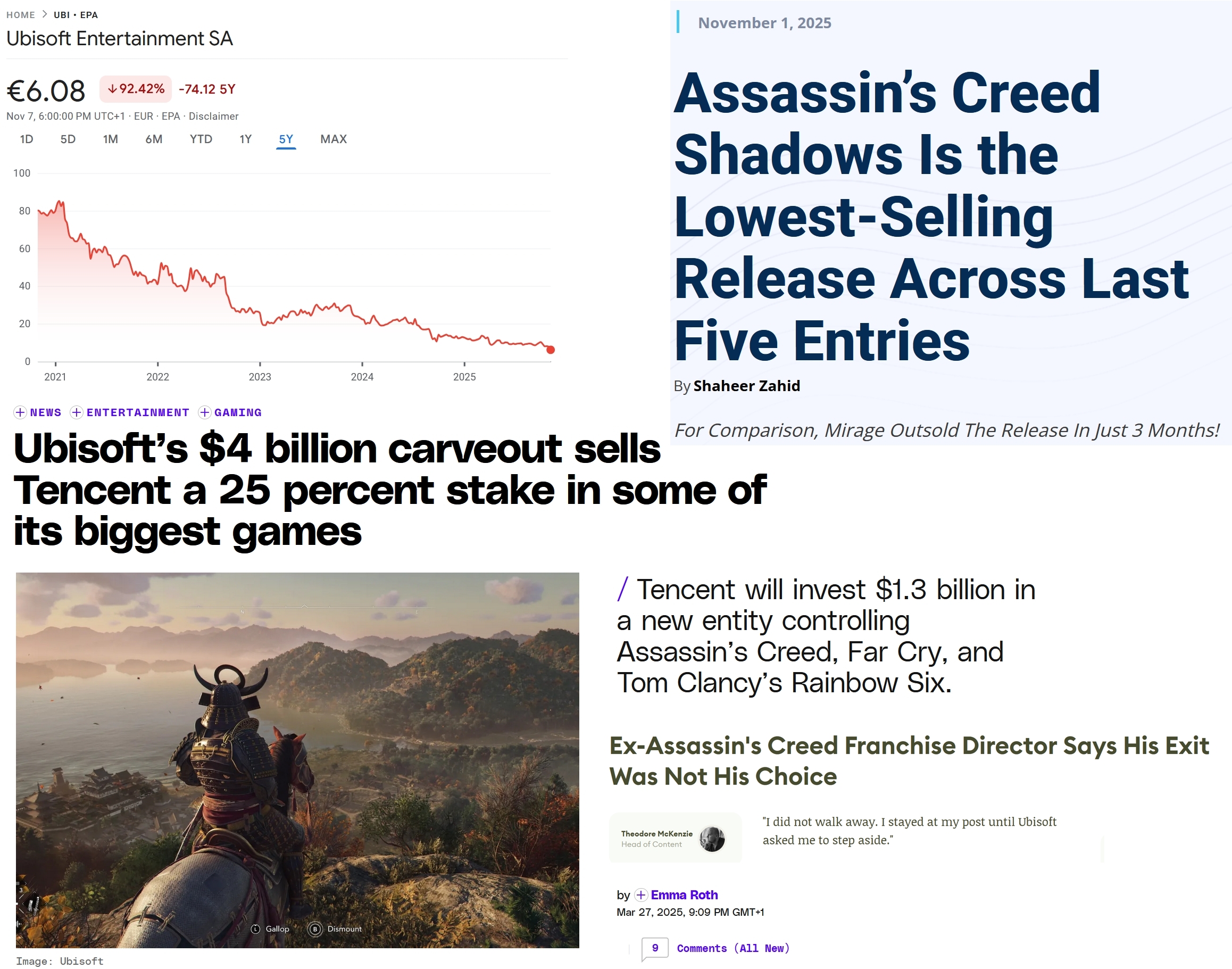 > Ubisoft со всеми своими франшизами и 20 тыс сотрудниками стоит в 10 РАЗ меньше CD Projekt RED.