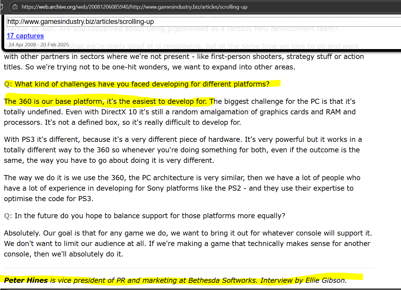 >>10081430 Скуф, ты повторяешься. Спроси Пита Хайнса или Тодду позвони, я хз. Играть в 20-30 фпс со скрученной в ноль дальностью прорисовки было нормально в те времена. А можно было и в 10-15 фпс превозмогать. У многих еще нормального интернета даже не было. В Готику 3, никогда ни на каких консолях не выходившую, играли так же.