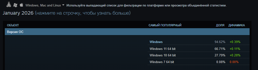 >>10087555 Дело в том, что самосбор пк крайне слабо распространён за пределами азии и снг. В США, ЕС, Японии покупают уже готовую сборочку и там, естественно, будет вин11. Про ноутбуки и не говорю, оттого и такая доля вин11.