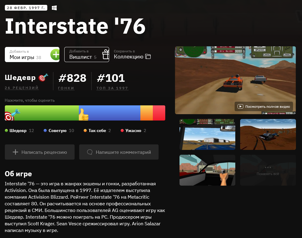 Меня больше Interstate 76, такой-то предок ГТА идущий на Первопне с S3Trio. Я правда так и не понял что там делать, меня на первой же стрелке разматывали :( Ну и NFS годнота, тоже такие же никакие требования к компу.