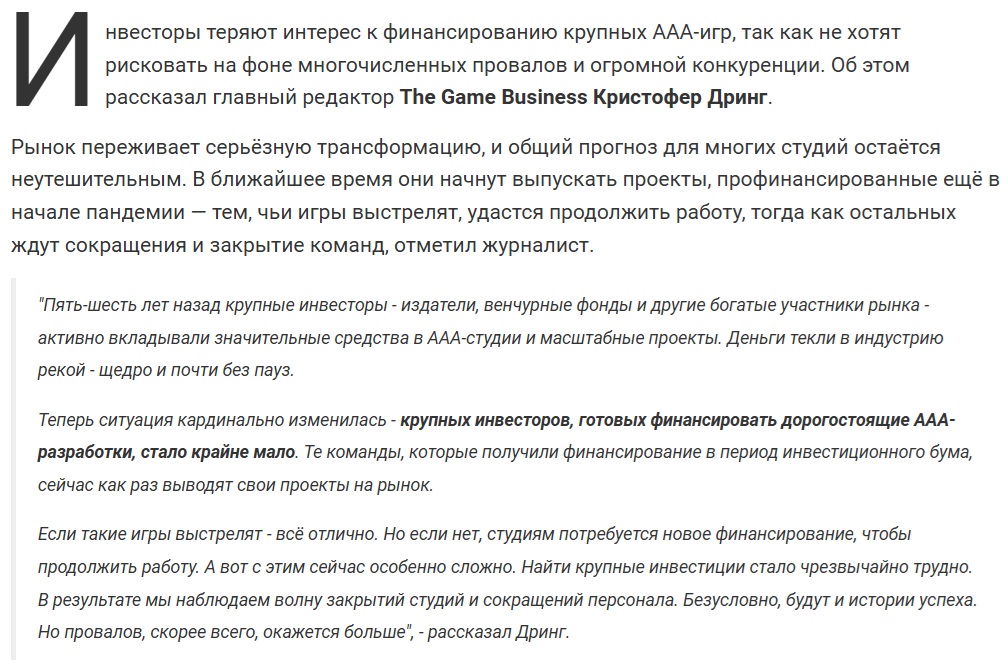 >Какой там конец игровой индустрии, она будет существовать пока приносит прибыль несмотря ни на что