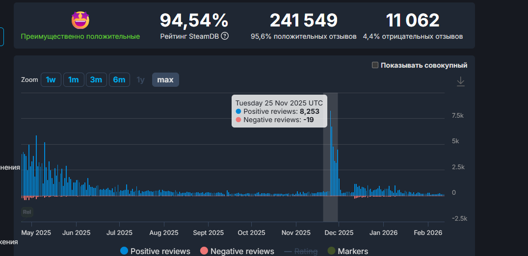 >>10101885 >5+ лямов продаж Чел, это количество "продаж" и взяли от количества отзывов Открытых данных по продажам нет. Вот еще забавное. Примерно 35 процентов игру в стиме по каким то причинам не покупало. Для сравнения, в отзывах бг3 процентов примерно 12