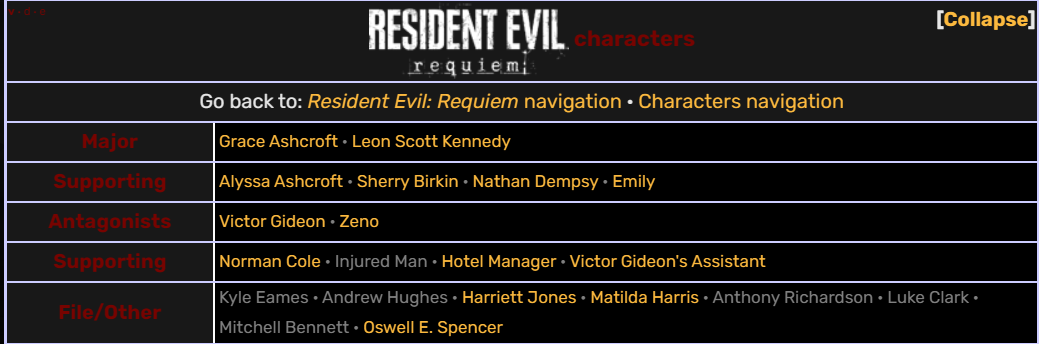 Заметили, что сюжет резика превратился в Попи Плейтайм или Фнаф кальчик? Злой учёный, абсолютно ёбнутый с повадками Эгмана из Соника и доктора зло. Скрывает таинственные исследование амбрелы под видом лечебницы, у которой в подвалах построена огромная шахта для переработки тысяч трупов людей в кровь. Проводятся чудовищные эксперименты над лолечками. Леон чисто случайно находит это место. До этого пропажа миллионов людей никого не насторожила. Потом оказывается, что в Ракун Сити была Ещё одна секретная Лаборатория. И она работает по сей день... после бомбёжки ракетами. Все функции лабы работают. Внутри идеальная чистота. Оказалось, что правительство США спонсирует эту лабу. Покупает за 120 000 000 - лизунов блять!1 Слепую хуете, которую Грейс может обойти и расстрелять из пистолета!1