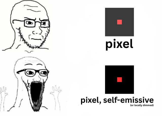 >>10004898 >На миниледах выгорают зоны подсветки Один на миллион случай выхода из строя подсветки, как было всегда на всех мониторах. А олед выгорает гарантированно -- это технология со сроком годности. >сцены с яркими движущимися объектами на чёрном фоне выглядят примерно как пик 2 Проблема телевизоров с <500 зонами. На мониторах, а тем более у Innocn давно такой проблемы нет. И блума тоже. Глазами увидеть невозможно работу локал диминга, его так же всегда можно подстроить. >Ты просто врёшь ради юшек непонятно кому Я как раз не понимаю кому ВРЕШЬ ТЫ и на кого твой пиздеж рассчитан.
