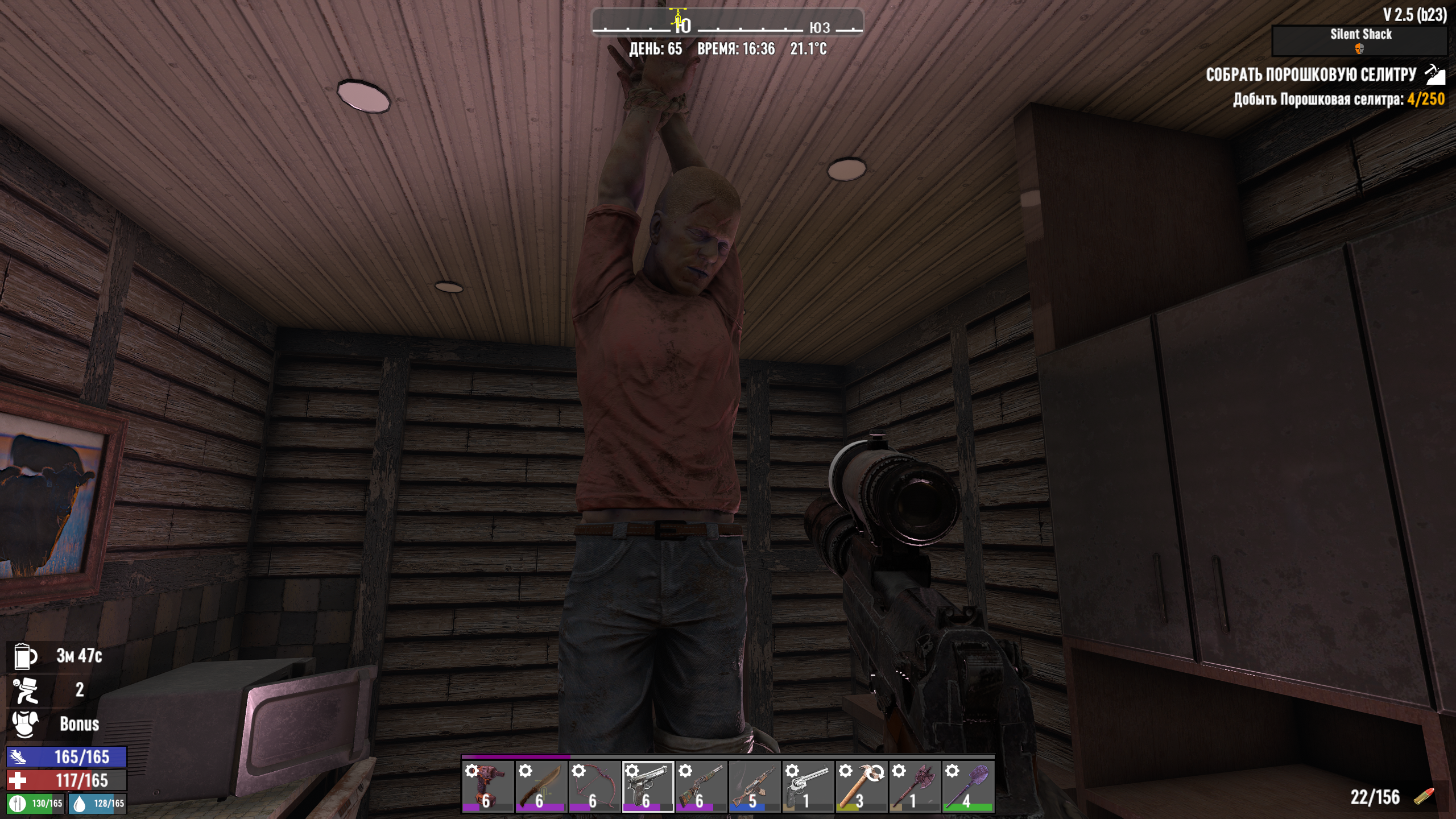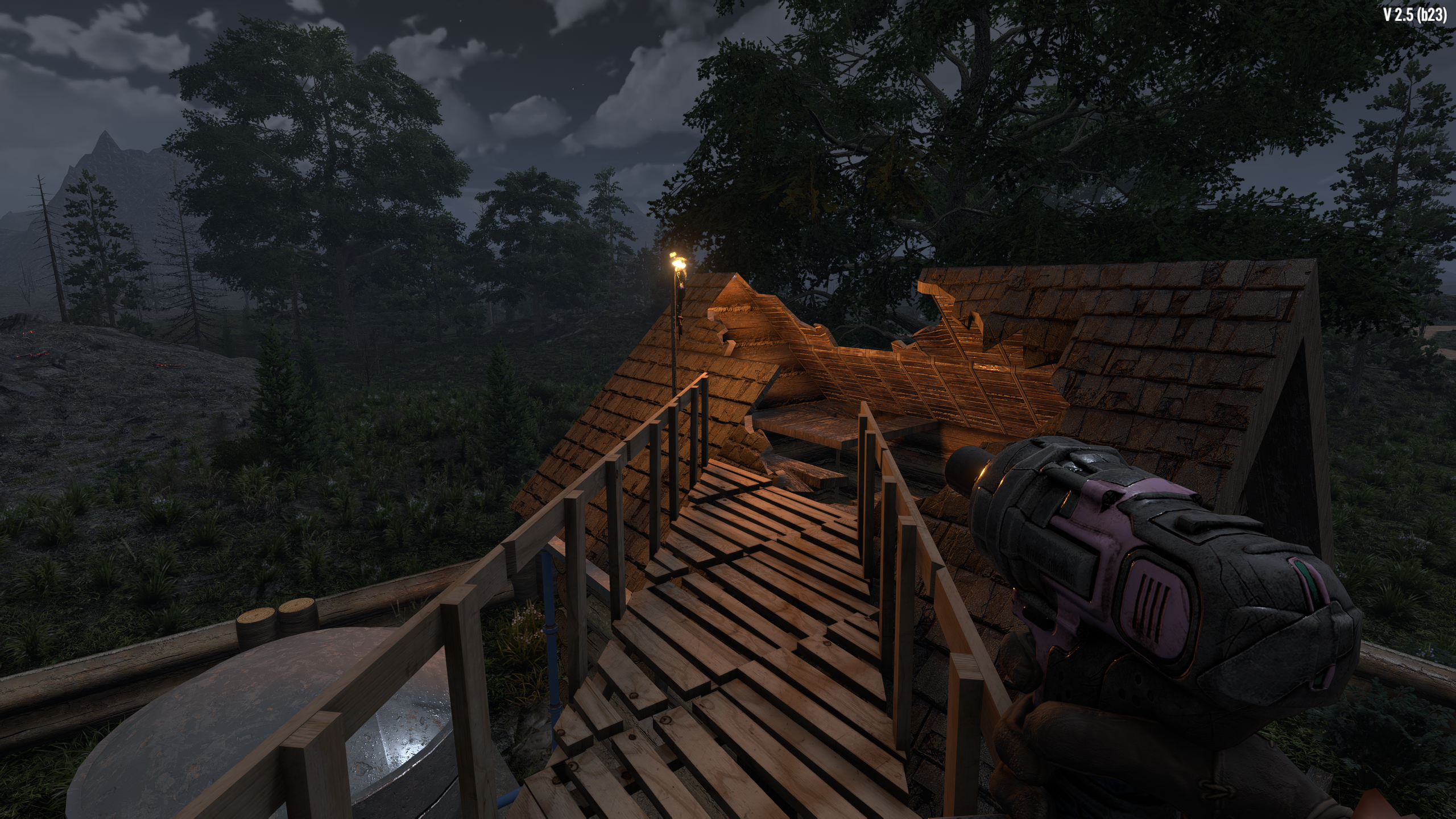 В описании кстати бред написан. Типа игра щитает убежищем полностью закрытые дома без окон без дверей. Но фактически считает за них колодцы на глубине, с дыркой сверху и вот это вот "чудо", к сожалению не на курьих ножках из деревянного штакета.
