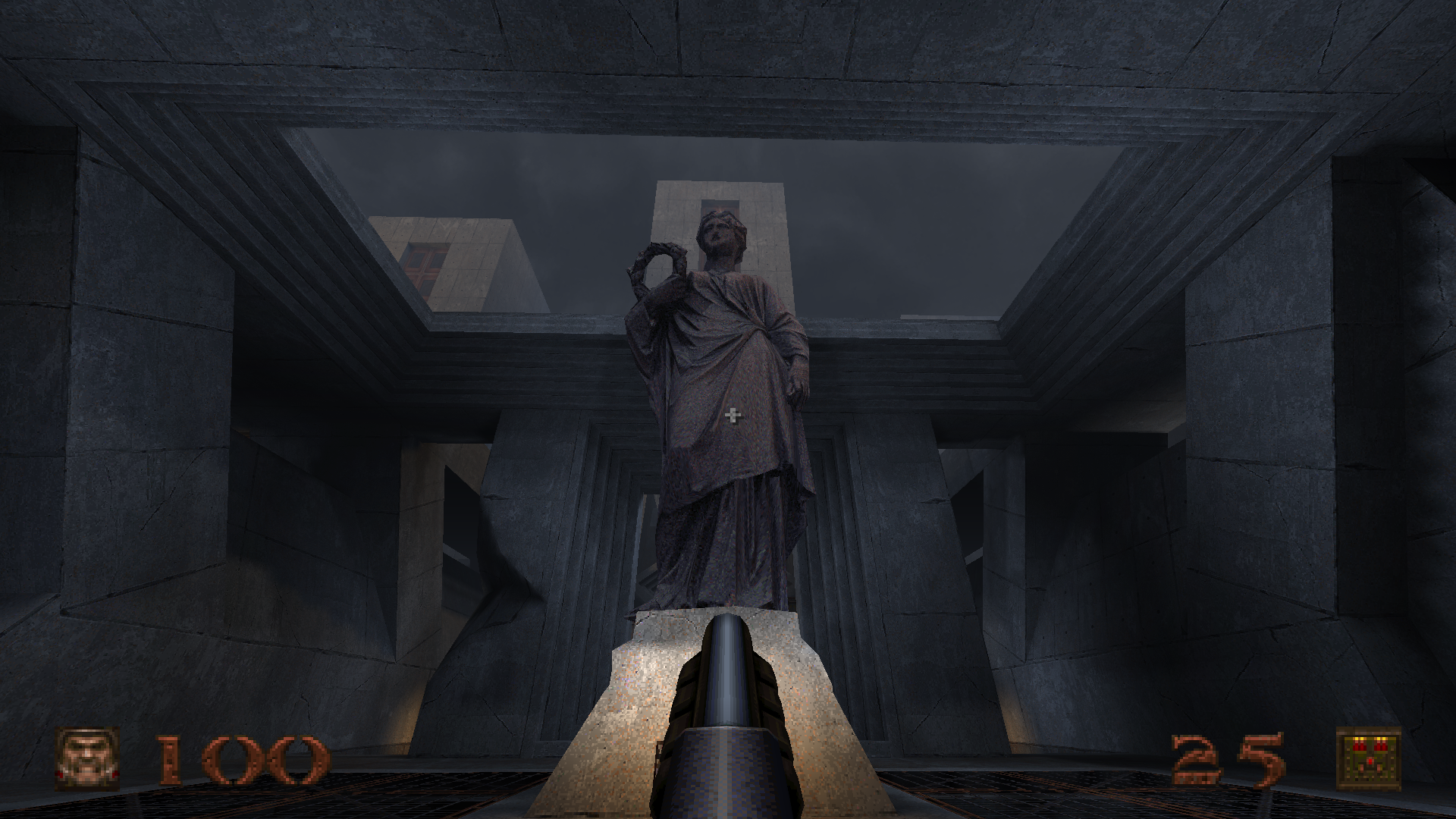 Прохожу quake подборку про бетонную архитектуру Brutalist Jam, музыка конечно добавляет атмосферы. Иногда можно наткнуться на мегаструктуры, но тут больше мрачная атмосфера.