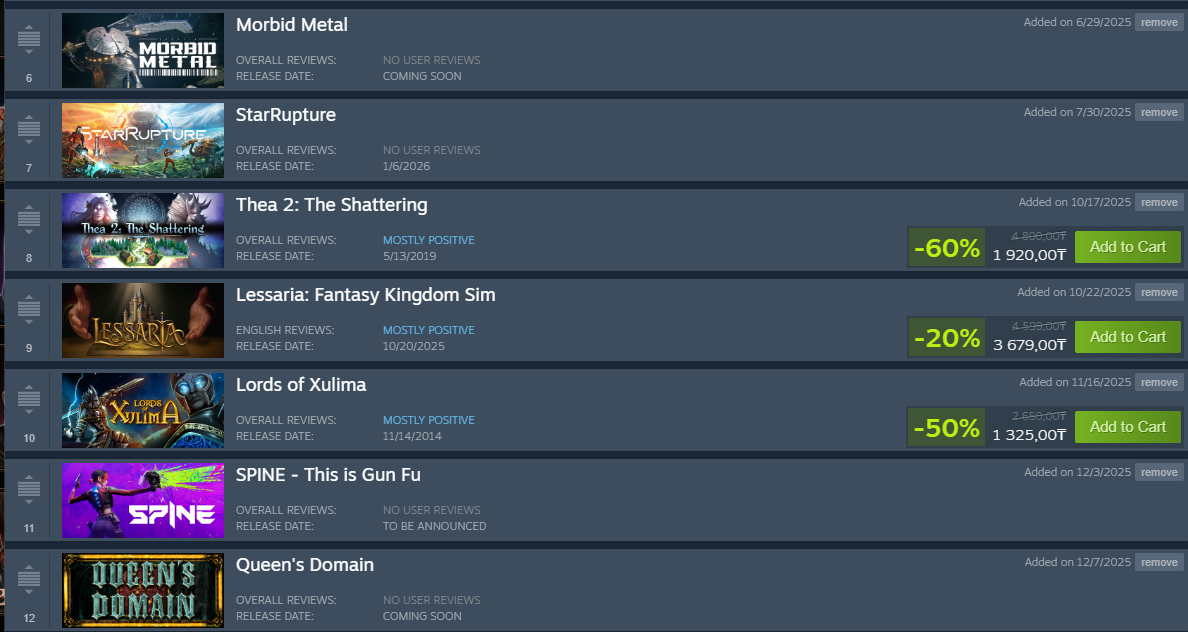 1. Kingdom Come Deliverance 2 2. Death Stranding 2 3. Tainted Grail 4. Arc Raiders 5. Metal Gear Solid Delta 6. Battlefield 6 7. Alters 8. Bloodlines 2 9. Outer Worlds 2 10. Split Fiction 11. Dispatch 12. Dune Awakening 13. Ninja Gaiden 4 14. Expedition 33 15. Assassins Creed Shadows 16. Doom Dark Ages 17. Roadcraft 18. Ghost of Yotei 19. Donkey Kong Bananza 20. Metroid Prime 4 21. Mario Kart World 22. TES4 oblivion Remastered 23. Avowed 24. Mafia The Old Country 25. Chronos 26. Silent Hill F 27. Hades 2 28. Silksong 29. Monster Hunter Wilds 30. COD BlackOps 7