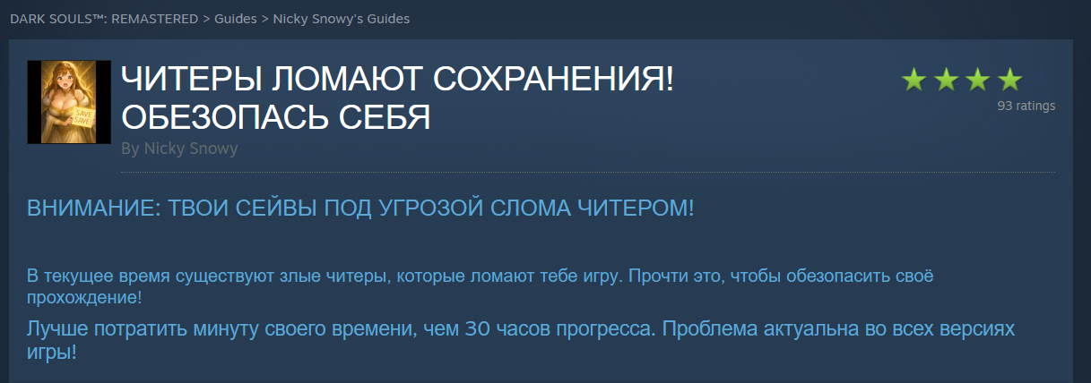 >>10049903 DS1 проходил в Стиме уже не в первый раз, после пиратке. Ниче не взламывал. В первом соулсе ачивки ещё нормальные, там надо 2.5 прохождения вроде всего. И сама игра не долгая. Вот DS2 и DS3 это пиздец. Там надо фармить ковенантные предметы. Нервы нахуй испортил себе все эти и ачивками. Кстати, ща пытаюсь пройти Sekiro. Сложно, но после всех этих 100% соулсов чутка получше. Парировать на Гундире научился в DS3 хотяб >>10046877 чел