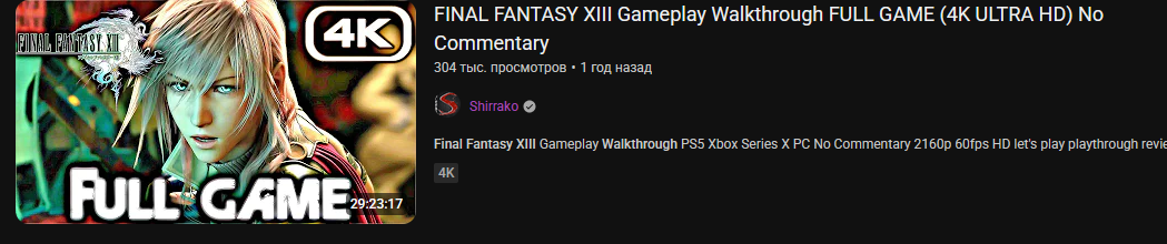 13 Финалка не игра, а кинцо, хз зачем это выпускали в формате "игры", где все что требуется от игрока натурально жать вперед и ИКС. Все геймплейные активности - просмотр сиджиай роликов и чтение записок.