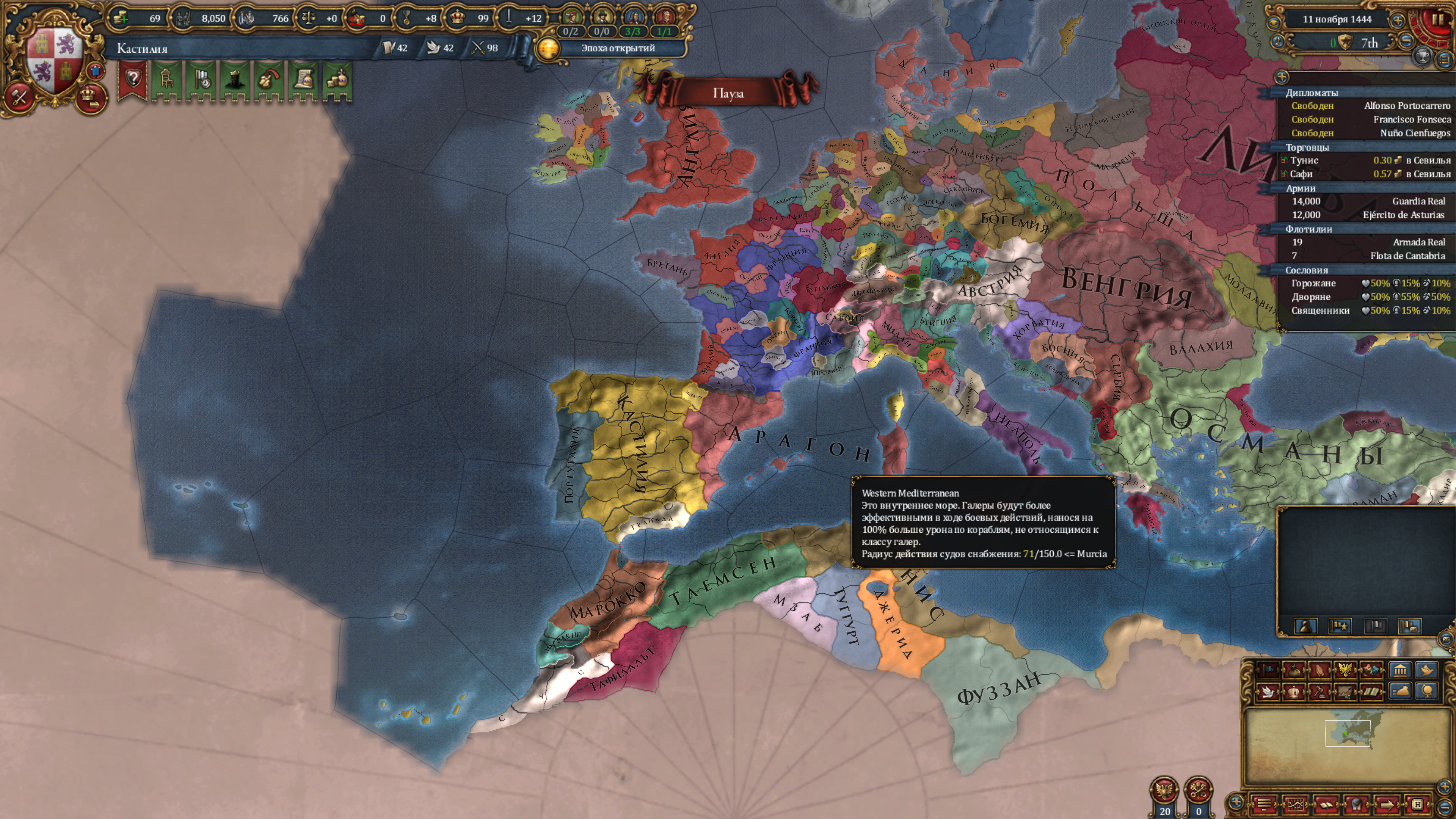 Хуй знает зачем захватил у Англичанина вонючего Ирландию. После моей войнушки в Италии, в Европе была коалиция огромная ну я и решил пока она там остужается, пиздать по островному овцеёбу. Он ещё исследовательские идеи первыми взял, хотя бот обычно их 2ми берёт. В любом случае, сейчас его обссать и в будущем его флот не будет угрозой. Но пока я воевал, кабоверде колонизировал Норвежец блять лол. Короче моя колониальная гонка будет с Норвежцем, что весьма удивительно.