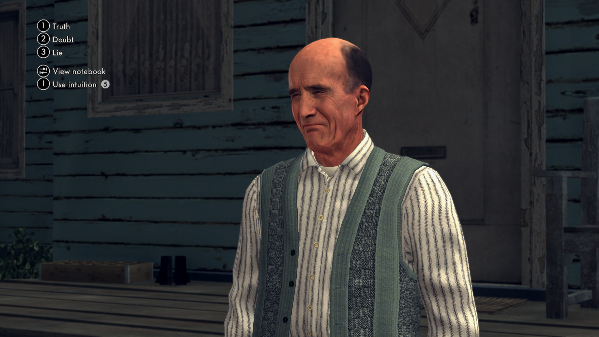 Тут стоит сказать несколько слов о механиках допроса, которые являются основной фишкой игры. Во-первых, они ни на что не влияют. Можешь нажимать что попало - нихуя не изменится (кроме циферки в конце эпизода). Даже в тех нескольких ситуациях, где ты якобы выбираешь кого осудить, но на самом деле нет никакого выбора. К слову, давить людей на улицах, насколько я понял, тоже можно, несмотря на вылезающий текст о "серьезных последствиях". Во-вторых, опция "Doubt" не имеет никакого смысла. Понятно, что ее нужно нажимать, когда собеседник начинает кривляться, но у тебя нет доказательств, чтобы обвинить в пиздеже. Вот только почему она называется "Doubt", если гг начинает кричать как сумасшедший? Немного погуглив оказалось, что изначально эта опция должна была называться "Force", что куда более уместно, хз зачем поменяли. Собственно, в ремастере вместо Truth/Doubt/Lie сделали Good Cop/Bad Cop/Accuse, что тоже лучше отражает смысл (я играл в оригинал). Еще забавно, что сперва можно выбрать "Lie" и гг начнет обвинять персонажей в убийстве, а потом нажать назад и как ни в чем не бывало спокойно продолжить разговор - Фэлпс скажет чето вроде "ой, ошибся" или "ну, стоило попытаться". Странно, что у этого нет никаких последствий. Более того, таким образом зачастую можно проверить правильный ли этот вариант: если Фэлпс начинает выдумывать полнейшую хуйню, не основываясь ни на чем - значит неправильный. Тащемта подавляющее большинство диалогов выглядят, мягко говоря, странно. В один момент мы спокойно общаемся, в другой кричим как психопат, чтобы спустя 10 секунд снова сменить тон на сдержанный - у персонажей отсутствует какая-либо реакция на происходящее. Будто я смотрю склейку сцен из диаметрально противоположных прохождений.