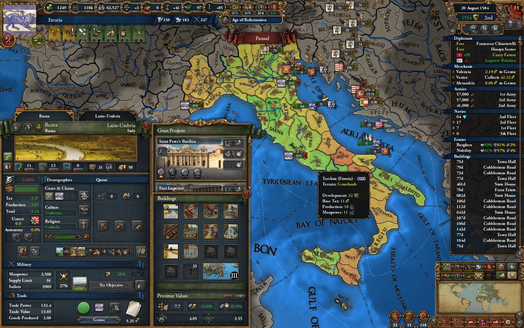 >>10055234 >>10055244 Самый обычный доход, просто нужно правильные идеи и реформы брать. 75-85% бонусов по итогу имею к доходу + вся страна застроена мануфактурами и мастерскими + имею большое влияние в двух крайне богатых торговых нодах - Венеции и Генуе - и перегоняю в них торговлю купцами и корабликами из Валенсии и Александрии + высокое среднее развитие = профит