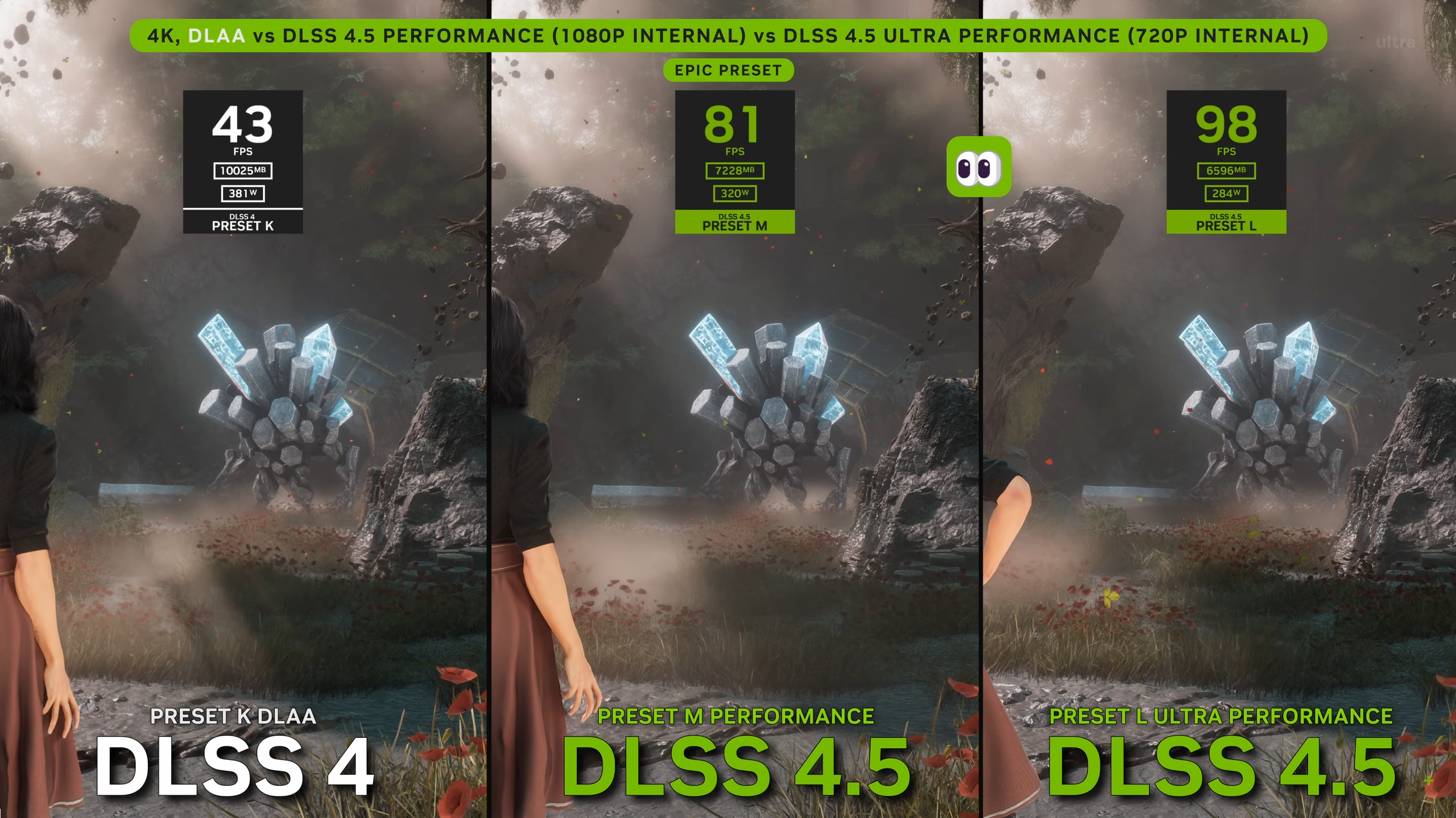 >>10061033 Как уже сказали фишка новых пресетов в том, что они на производительных пресетах показывают картинку как на квалити пресете/DLAA у 4.0, что на выходе даёт больший фпс.