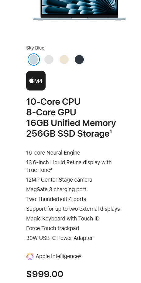>>10064639 >М5 Такто 2к баксов стоит Прямо сейчас 1599 долларов в макбук про M5 весной выйдет Air M5 за 999 долларов Это регулярно, цены эпл не поднимает. В 2020 эйр М1 стоил те же 999 долларов.