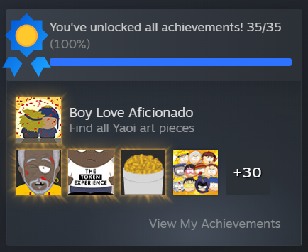 Да раньше разрабы не боялись делать такие ачивки+ показывать как белый мужчина трахает менструальных писек и не одну.Что же стало с видеоигровой индустрией....