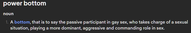 >>10065226 Ну это менее логично. Ведь активная роль подразумевает звериный твердый стояк. А пассивная роль в таком не нуждается, более того может быть принудительной. В то время как активный гомосексуалист является инициатором, то есть логичнее назвать гомосексуалистом именно активного. Как минимум у него встает членище на мужика перед ним стоящего и в данном случае появляется желание его трахать, проигнорировав находящуюся рядом половозрелую самку с попой и сиськами.