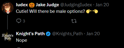 >>10064923 Ну смотри, не перечисляя романсабельных мужчин. Тяночки в КМ - капризная рыцарша, которая не заводит детей с ГГ, но если её не романсить, то заводит детей с каким-то фермером; Коктавия, которую ебёт орк; близняшки-тифлингши - топовый вариант, добренькая так себе, злая - лучшая девочка обеих частей нодискасс, можно романсить одновременно. ВотР: маньячка, которая чуть ли не прямым текстом говорит "люблю хуй в себе", пробег высокий; бывшая суккубша, одна из самых популярных в своём борделе, то есть пробег высчитать нереально, но типа встала на путь исправления и строит из себя лиственницу-недотрогу, любимица тредовских гигачадов, живущих в отрицании, И невероятно тупая мутантша из племени, которую как минимум ебал другой сопартиец омеган.