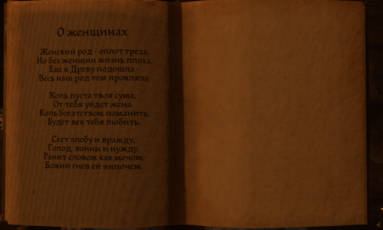 Минусы: мы играем за какого то опущенного бича, хуесоса. Вот вначале игры мне дали задание выбить долг. купить угля и пива. И буквально везде меня ХУЕСОСЯТ. и ЭТО ВАМ НЕ ДАРК СОУЛС где вы можете надрочиться и дать пизды боссу. тут ВАС БУДУТ ЕБАТЬ ПРОСТО ПОТОМУ ЧТО ВЫ ЧОРТ. вы не отпиздите никого и никого не убедите пока не прокачаетесь по статам и не обзаведетесь шмотками. причем брать их неоткуда поначалу, это же симулятор, никто вам нихуя просто так не даст и денег не заплатит. Короче в итоге я решил спиздить вещи чтобы купить бате угля - результат видрил. ну и механики выглядят какими то то слабыми, например бой на мечах невнятный, на кулаках тоже. чувствуется какой то левелинг, когда я вначале огребаю от алкаша а через час игры дал пизды бандиту просто потому что теперь он в роли бомжа с палкой а у меня в руках меч. Посмотрим что дальше будет, может рили квесты интересные будут. тут еще сука сохранений нет нихуя и нужно бухать для сохранения, а бухло покупать. а при этом надо пиздец как читать описания квестов, потому что мне написало съебать из замка, ну я и съебал, только вот сука лошадь спиздить забыл, поэтому приходится тупо пешком идти.