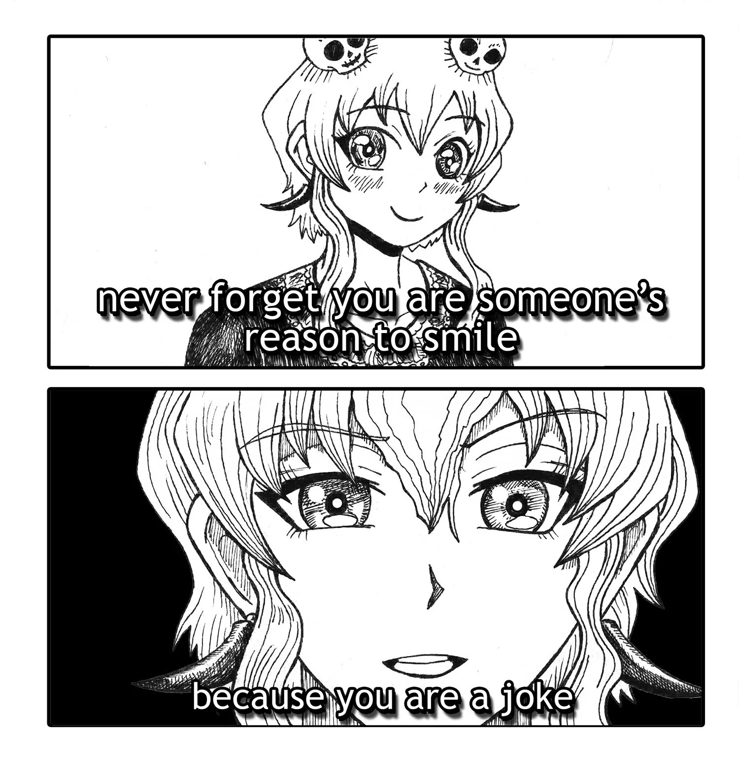 >>10067165 Да тоже самое, только помножь на проблемы пиздюков. Меня родители обижают, я жирный, не сдал экзамен, я должен работать чтобы содержать больную сестру, а хочу выступать в цирке и тд