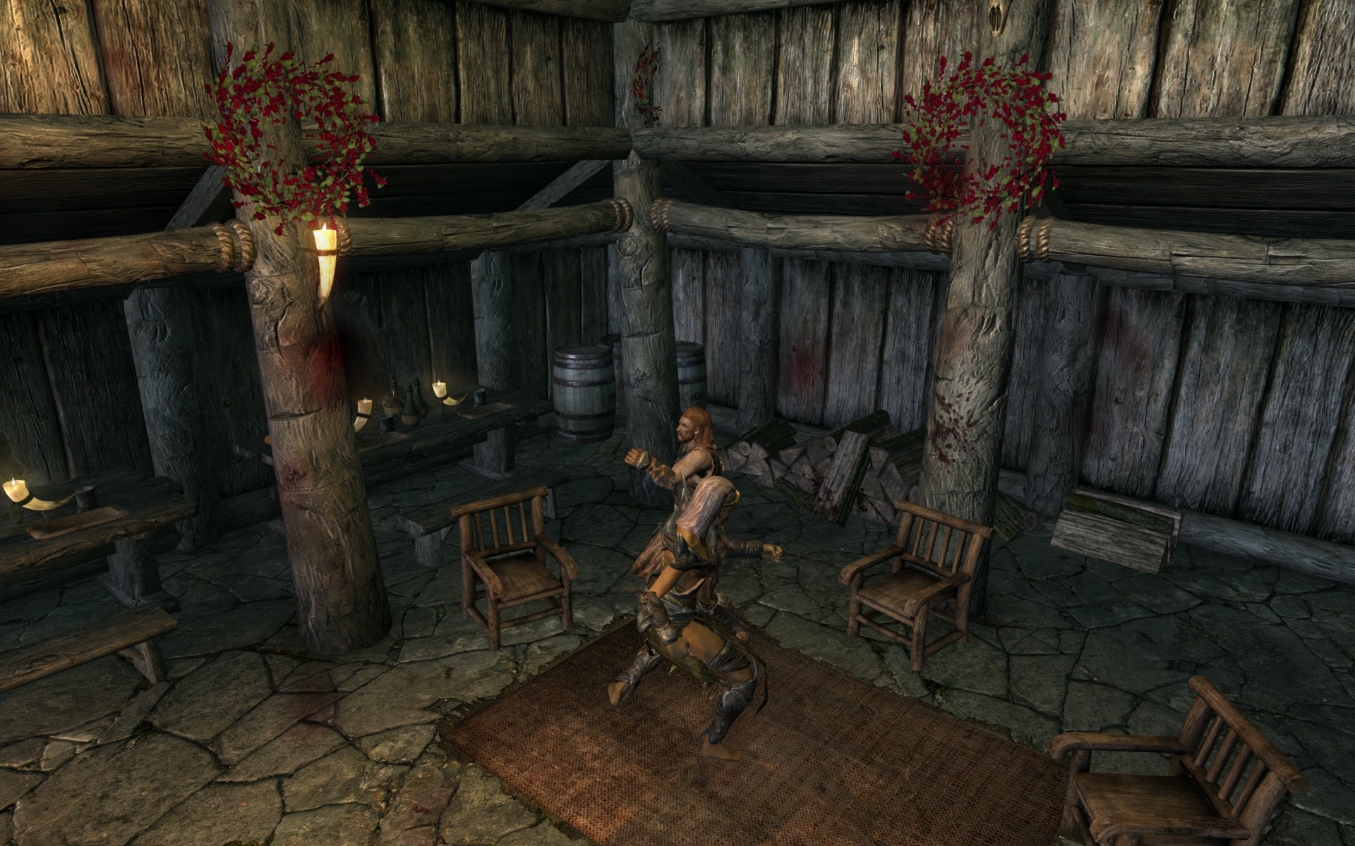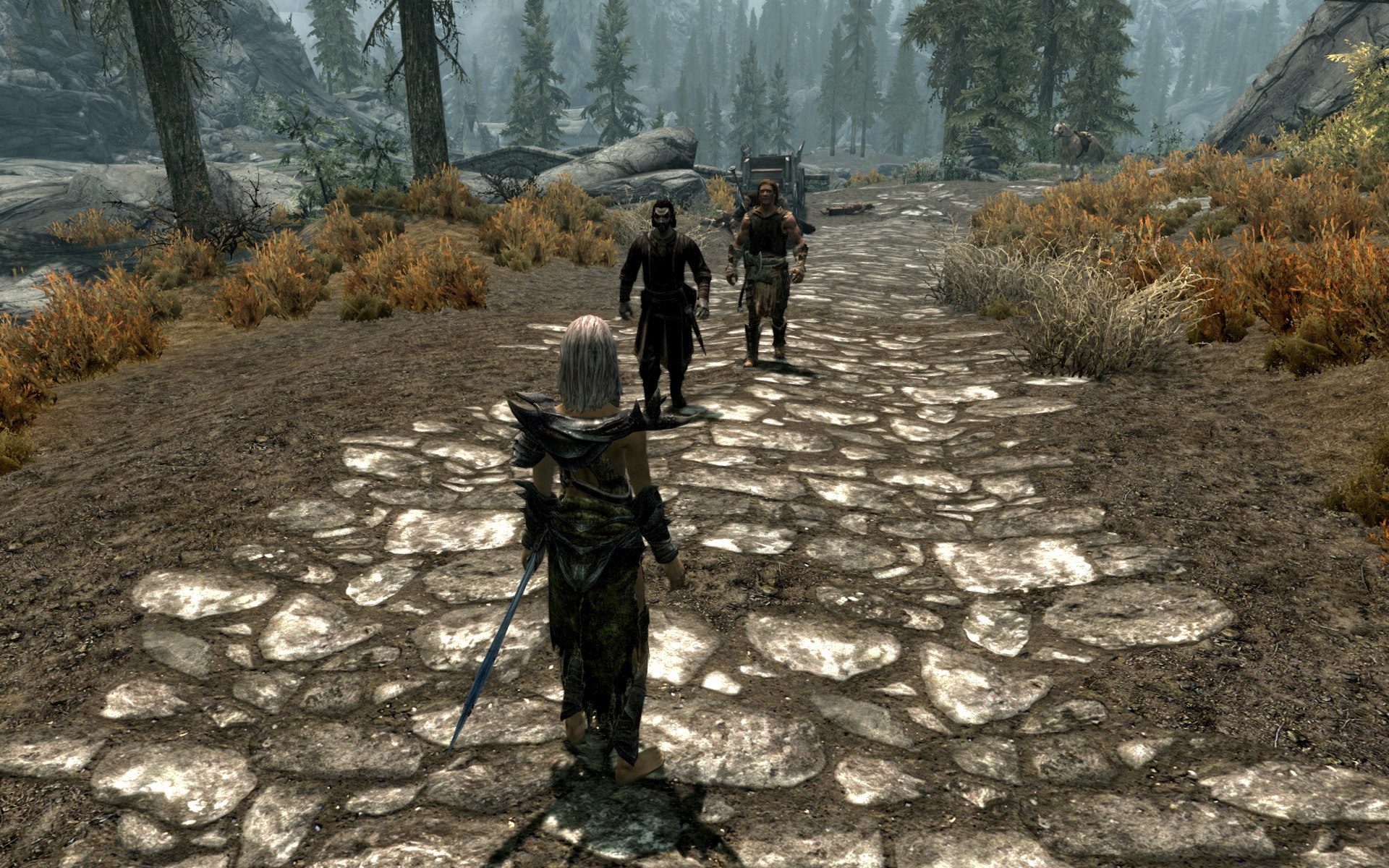 Убил первого дракона только сейчас. Решил вступить к Соратникам, хотя, учитывая мой (псевдо)отыгрышь их перерезать всех надо. Но мне прохождение квестов важнее, так что ограничился только фалмерской бронёй (которая так сексуально обнажает ножки и животик) и ледяной магией. В качестве первого задания сказали подраться с тем пацаном из Рорикстеда - Эриком, что назвался Грозным Убийцей. И скажу, что на хай лвлах он хоть и не убийца прям, то довольно толстый, так что драка долгая вышла.