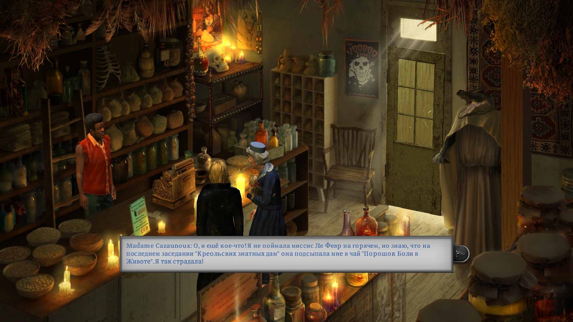 Отличный детективный квест с налётом мистики. Новый Орлеан, убийства, друг-полицейский, верная серенькая секретарша, роковая красотка, культ вуду, тайная семейная история - всё на месте. Не удержался, прошёл сегодня ещё и день 2, но пока всё, ко мне там сестрёнка в Трейсл оф Колд Стил приехала, пора бежать Свитч включать.