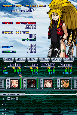 В Exceed это получше продумали, кстати: там максимальное набитое число хитов тебе восстанавливает твоим бойцам потраченные СП (по 1% за каждые 10 хитов) после боя, поэтому цепочки приходится строить во всех битвах вообще. И еще сделали кучу персов чисто для саппорт-атак (кот-глиномес, русалка-пиратка с гигантскими дойками, кошкоторговка, злая Китсуна, злая шоколадная робобаба и т.д.). Только в итоге все это долго и муторно делать, поэтому я первую проходил три раза, а Exceed- только один.