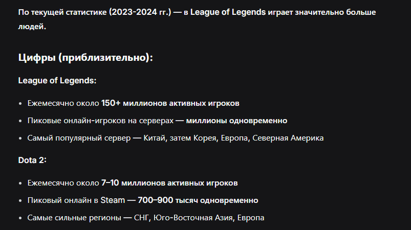 @monkey >>10075619>>10075626в снг дота рулит из-за вайва с wc3, valve подхватили и сделали ти с призами под миллиард баксов, плюс нави/вп всегда тащат. лол тоже юзают, но риоты с их балансом и донатом всех заебали, плюс в доте глубже метагейм, не такая казуалка. обе мобы токсичные, но дота честнее в фарме и камбэках.