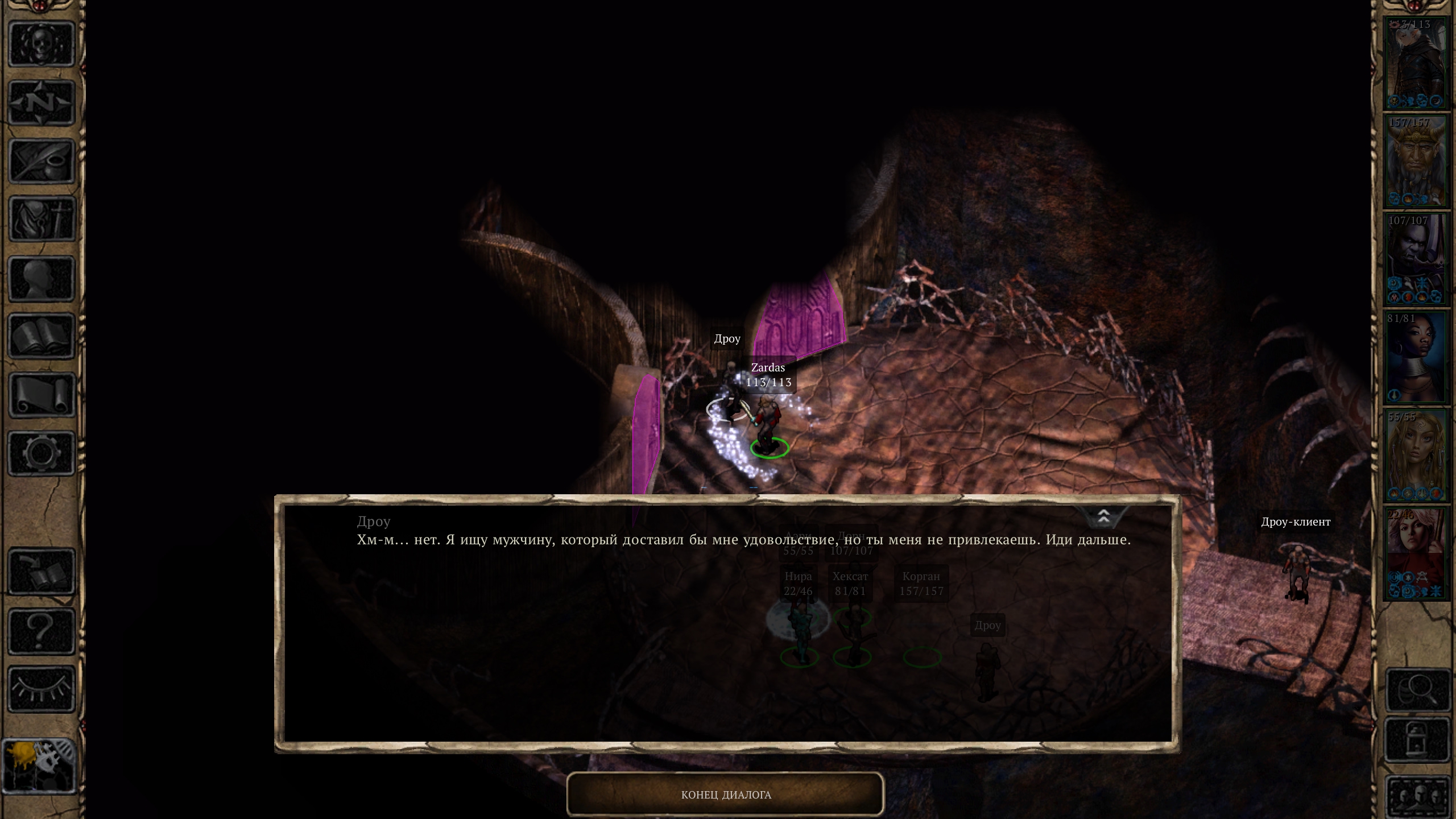 Я уже наверное больше половины игры прошел и только сейчас узнал, что во второй части разрабы убрали дополнительные диалоги под зачарованием. Вот казались у эльфов и дроу хорошие резисты к чарму и доминации, но я то это все могу кучей магией пробить. И зачармил. Но нифига. Вот не хватает такой мелочи. Было бы приятное, если бы диалоги менялись от высокой харизмы ну или под совсем уж очарованием. Приятная мелкая деталь бы было. Чеков на статы вообще этим играм не хватает.