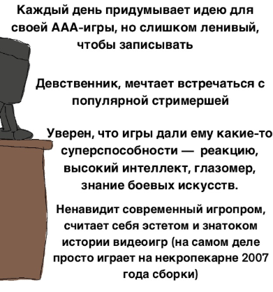 >закомплексованный сычев промытый тролингом душепидоров появившимся еще до его рождения >пердит джва дня чтобы с шваброй в жопе победить в игрульке чертика >бежит в интернет >всем похуй >кто то говорит что сычев лох, пруфов нет, швабра не та, не прошел @ >ероха представляя себя королем артуром гигачидисоном разъебывает нечисть эффекто как в аниме вместо пидерских имерсивбрекинг кэжуал кувырков >идет в интернет попускать сычева за швабру не той длины Вся суть