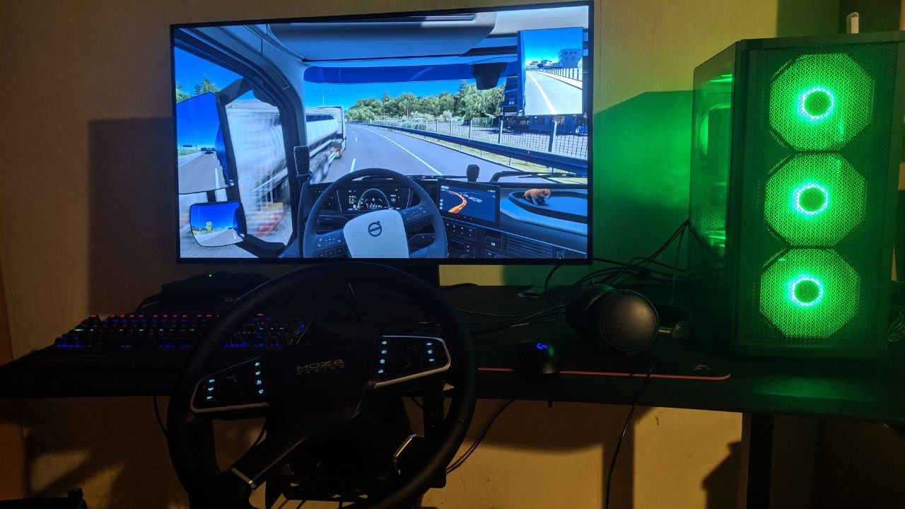 А я в евротрак играю. На новогодней распродаже купил полным комплектом со всеми картами, прикупил руль-копию руля грузовика мерседес, коробка сука кг 20 весила из за электромотора. Теперь аутирую, обратная связь руля идеально имитирует поездки. Примерно как в свою легковушку сел