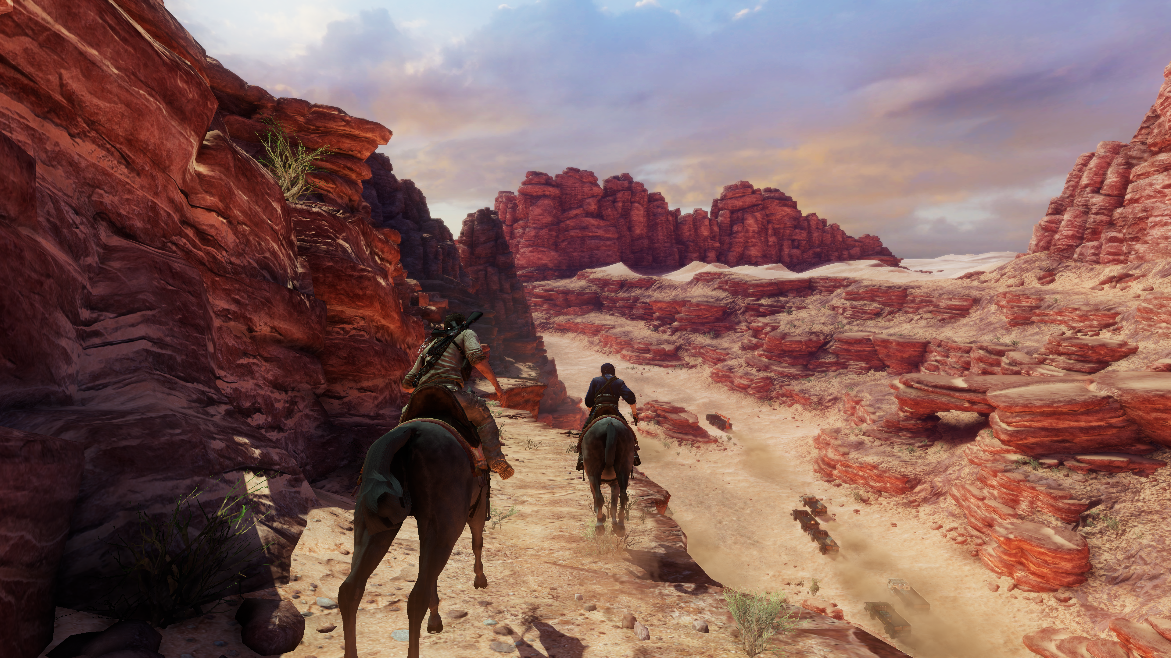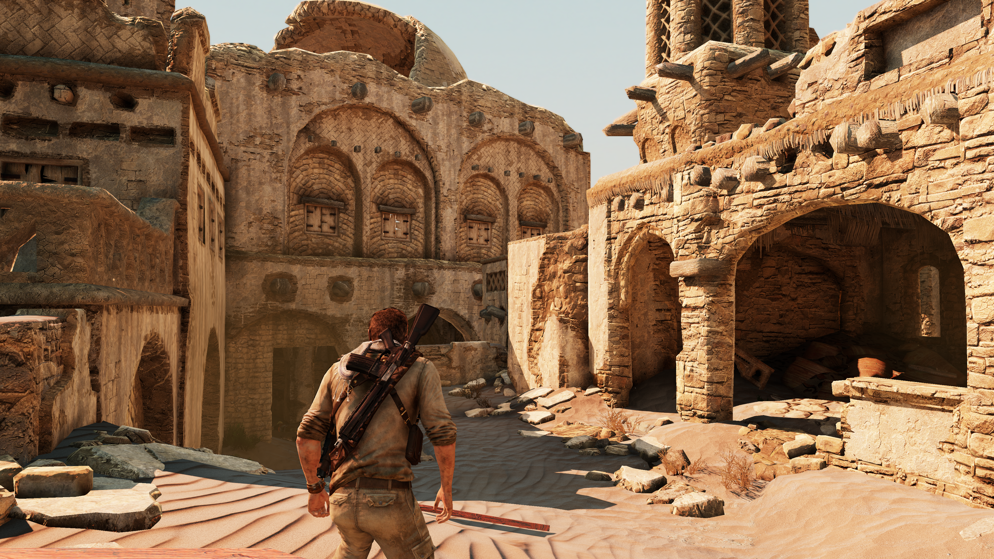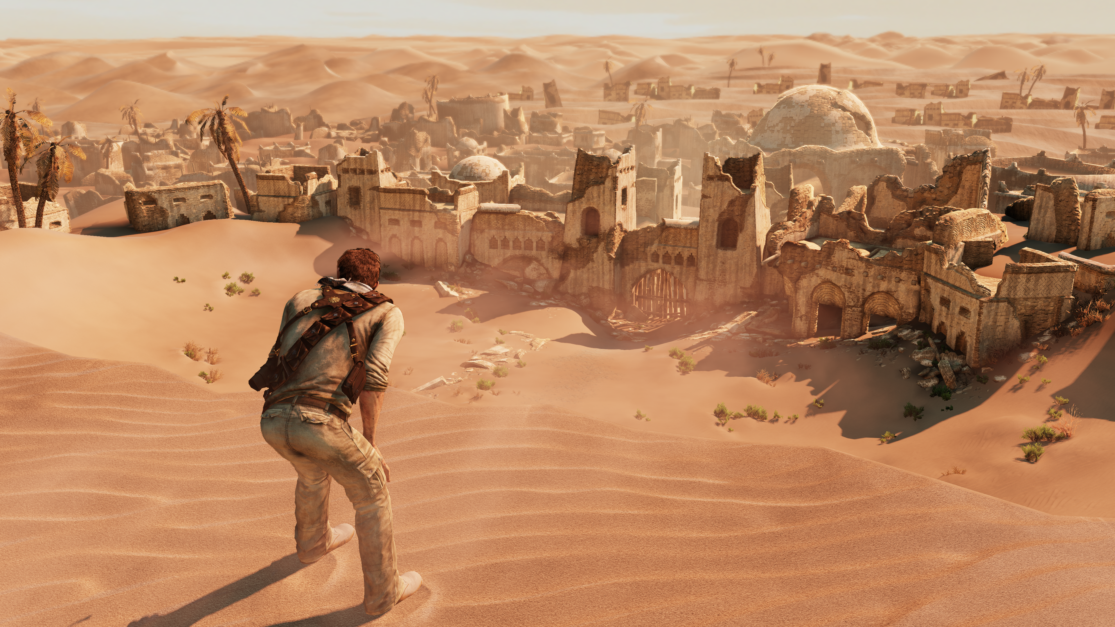 Какая же СОЧНАЯ картинки в 3 анчартеде, вся эта пустыня залитая солнцем, горячий песок, густые тени. Сразу видно игру ещё делали ХУДОЖНИКИ, которые просто хотели сделать красиво, а не пытались в реализм со своим ртх-хуитикс