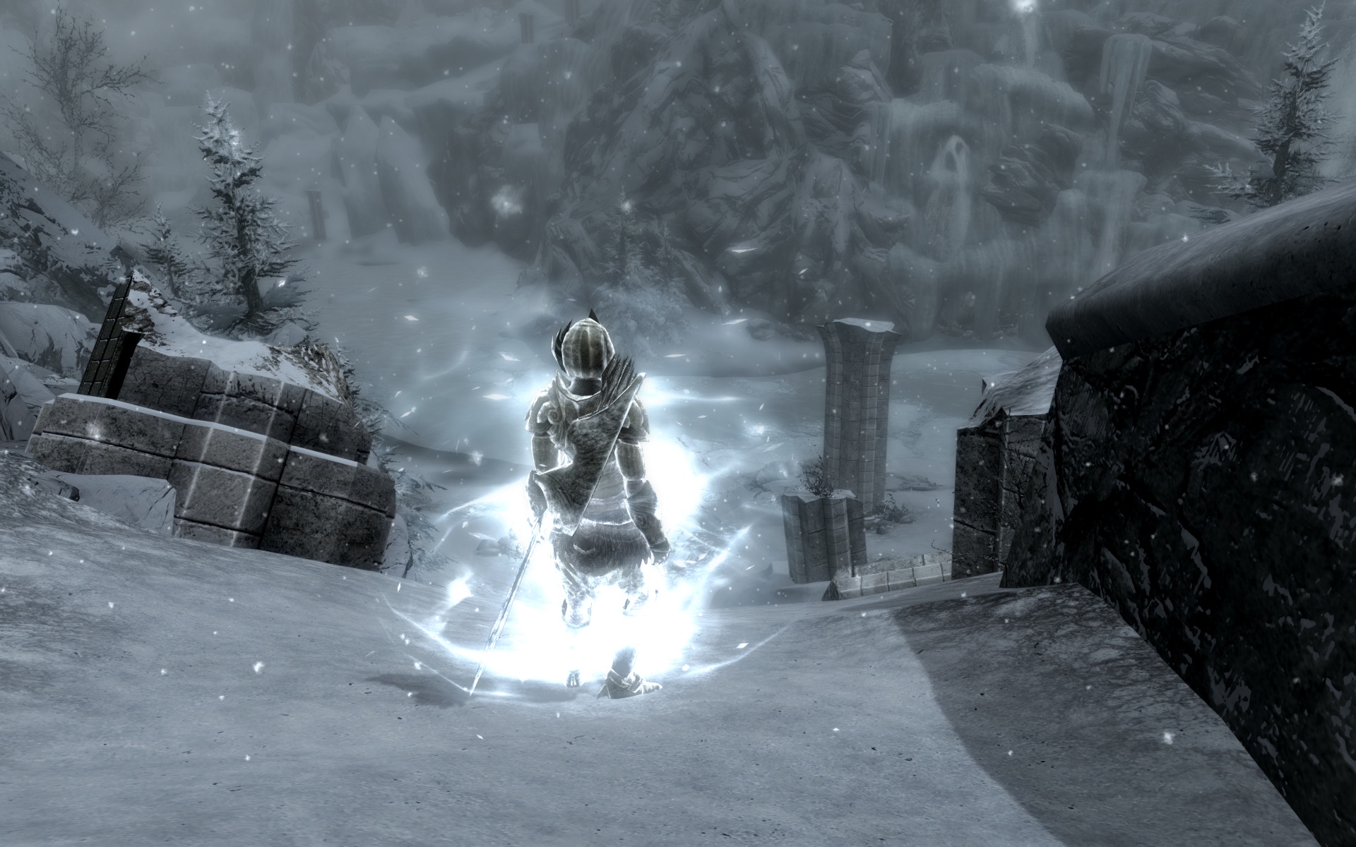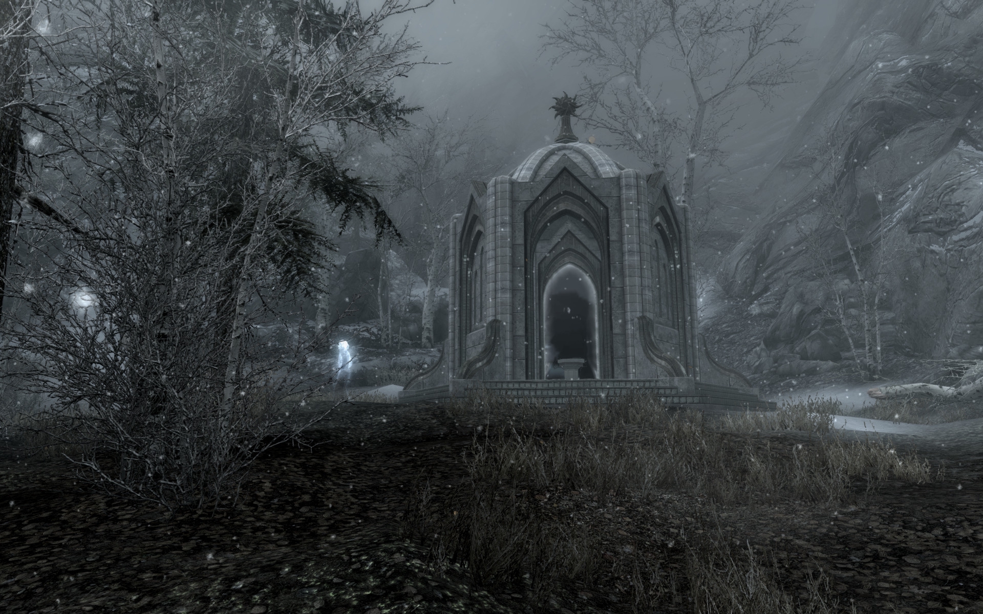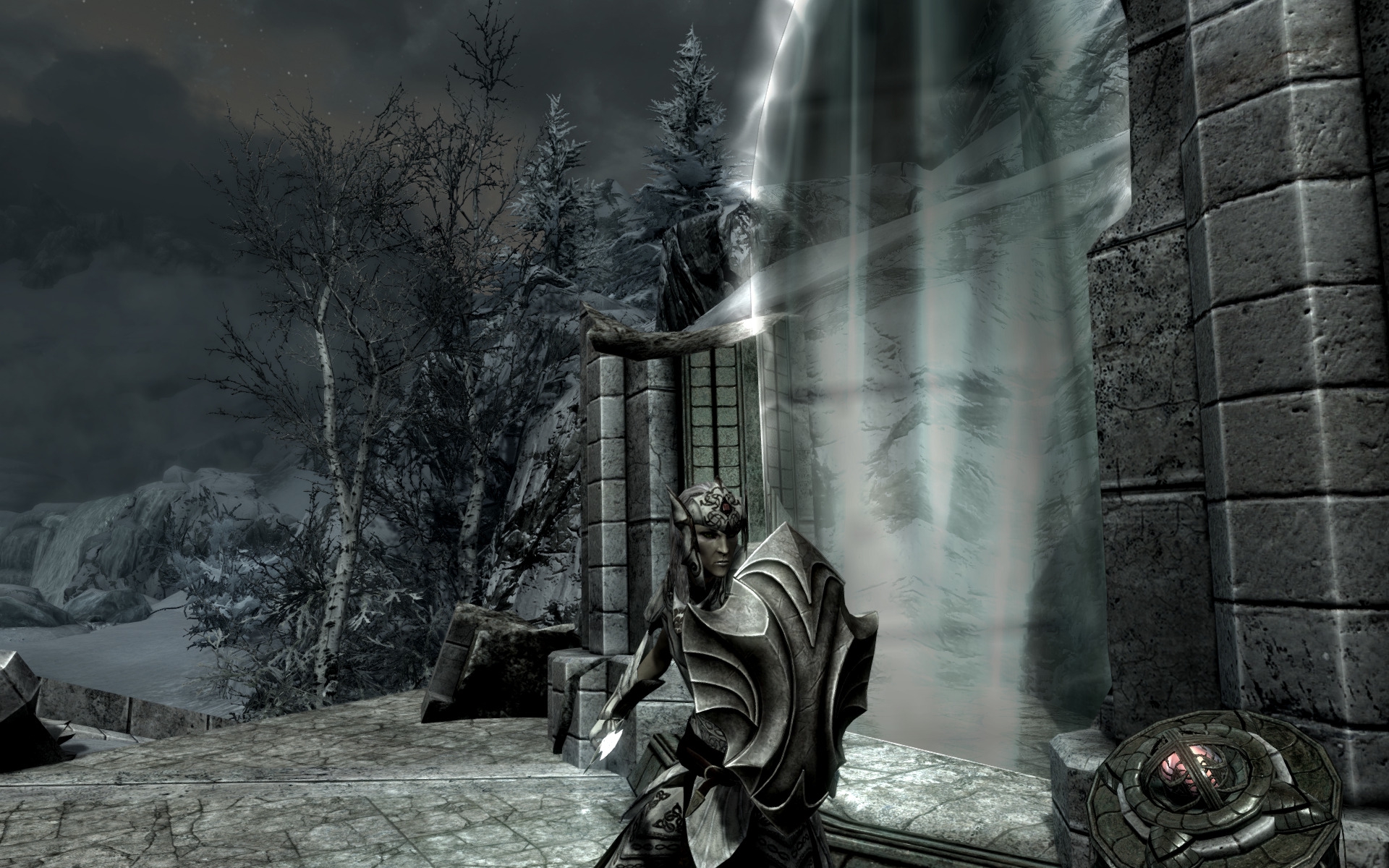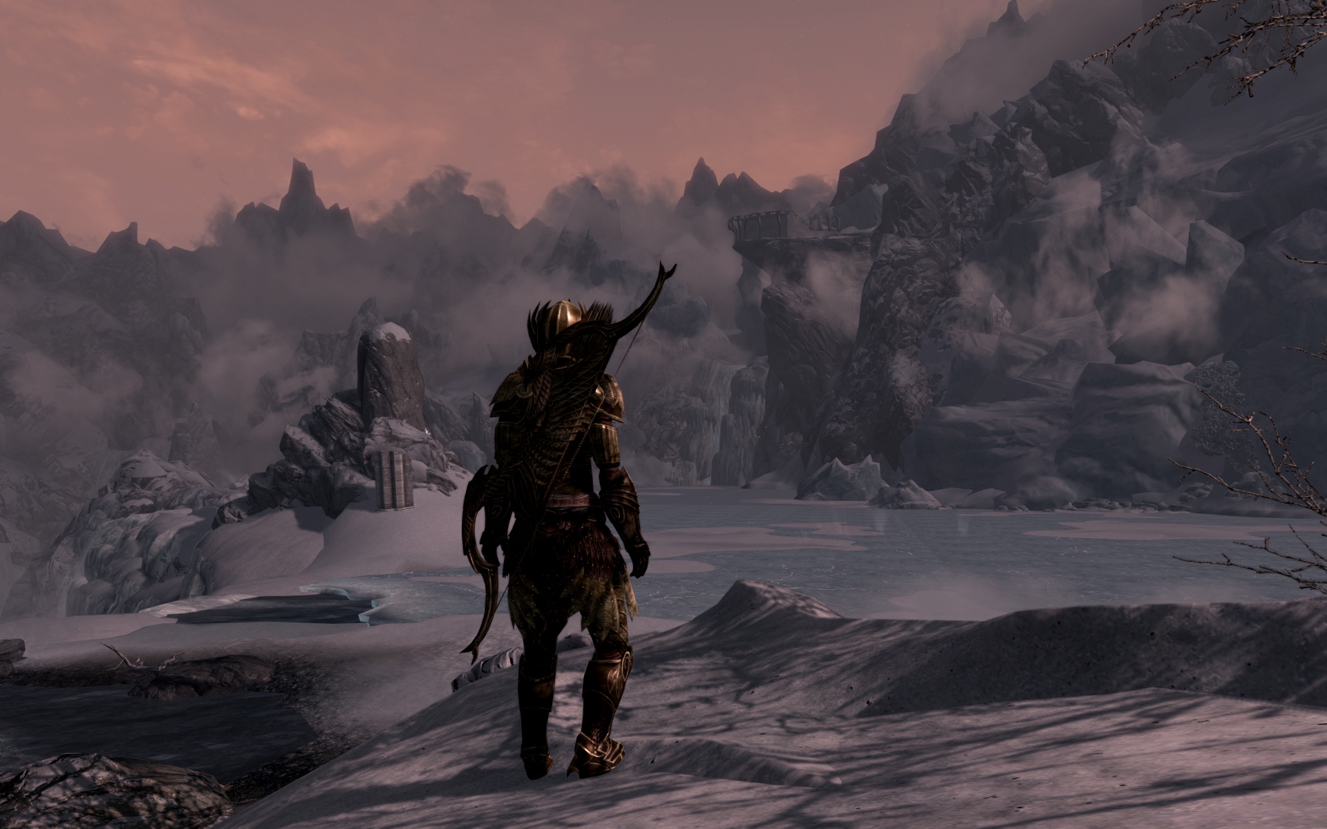 Итак, наконец я дошёл и прошёл самую красивую локацию в Скайриме - Забытую Долину. Контраст между занесённым снегом пейзажем, берёзовыми рощами без листвы и яркими розово-голубыми цветами и изящной эльфийской архитектурой, да ещё и под прекрасный саундтрек уникальный для этой локации, завораживает. Ну и ещё наконец-то хоть какой-то лор фалмеров.