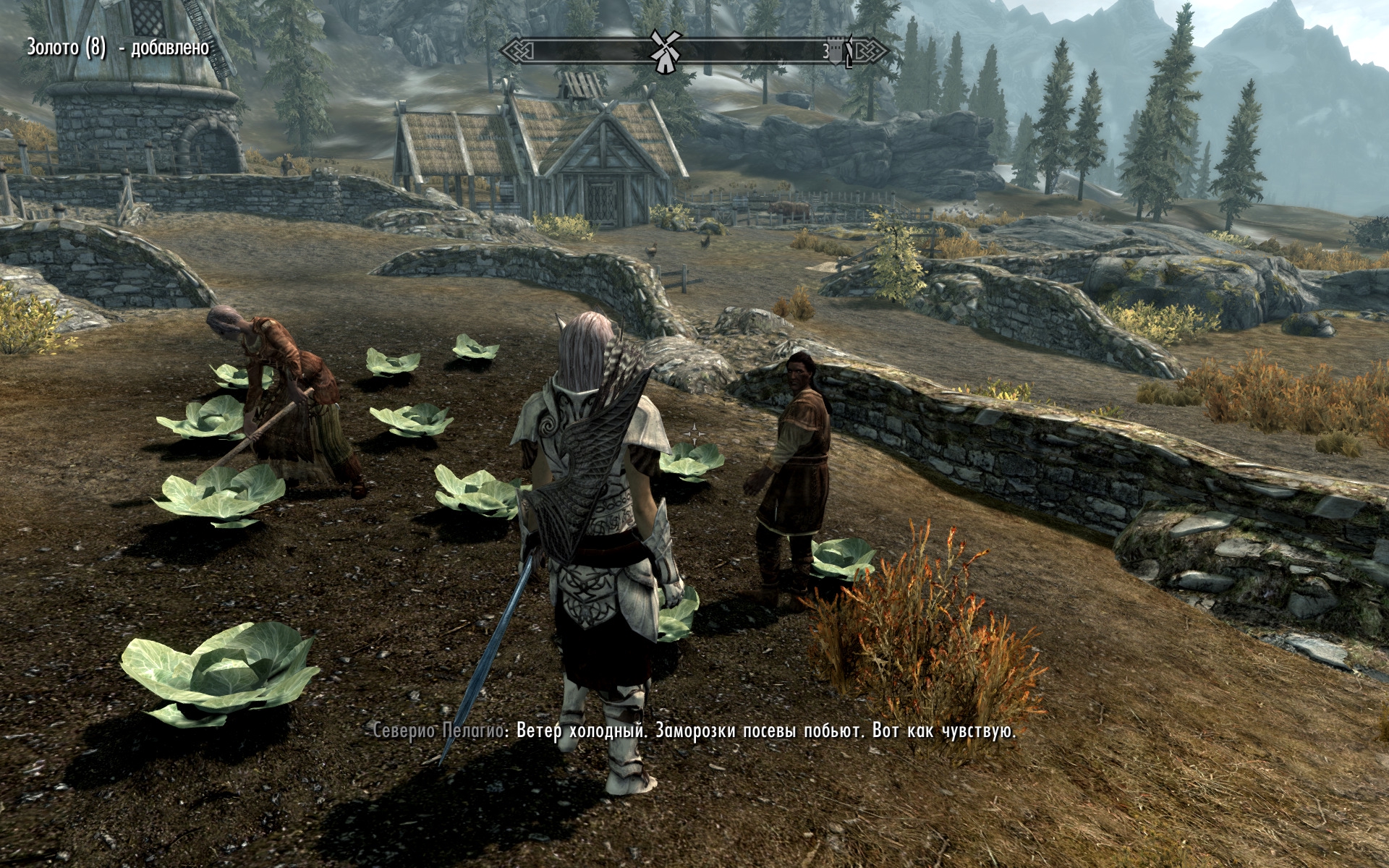 Ветер холодный. Заморозки посевы побьют. Вот как чувствую. Заметил, что у него, у фермера в Рорикстеде и у фермера, который не хотел Цицерону помогать, жёны - альтмерки. Это какая-то мода у фермеров Скайрима - взять в жёны представительницу высшей расы? Или просто альтмерки прыгают на хуец скайримских фермеров, не дождавшись внимания своих пидомеров?