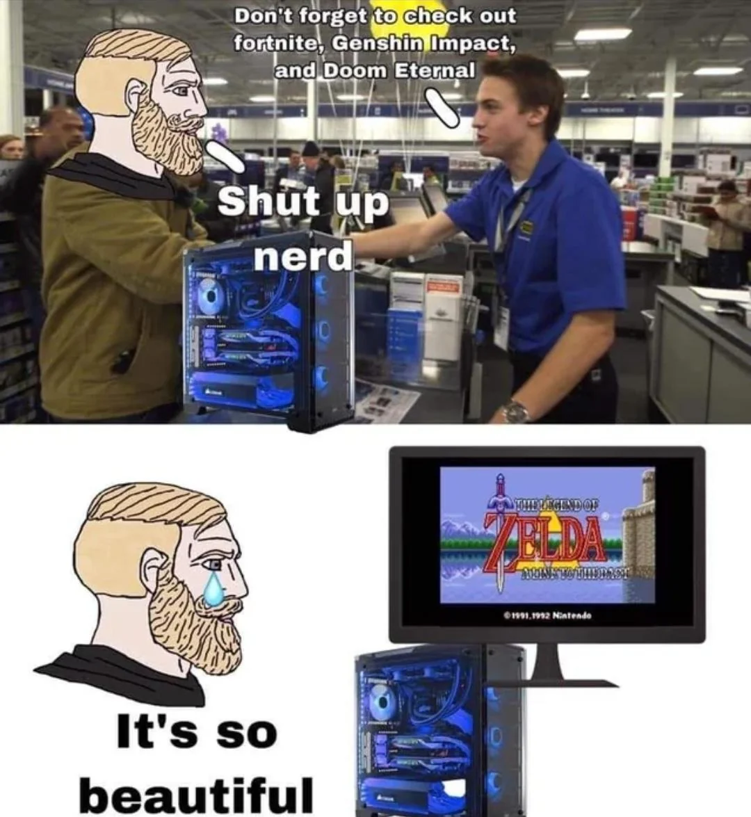 >>10079017 Ахахахахаха. Фанаты агуши поголовно леваки копиумные, которые выглядят как нюкукич на пикриле. В зельду он на пк собрался играть, так и поверил.