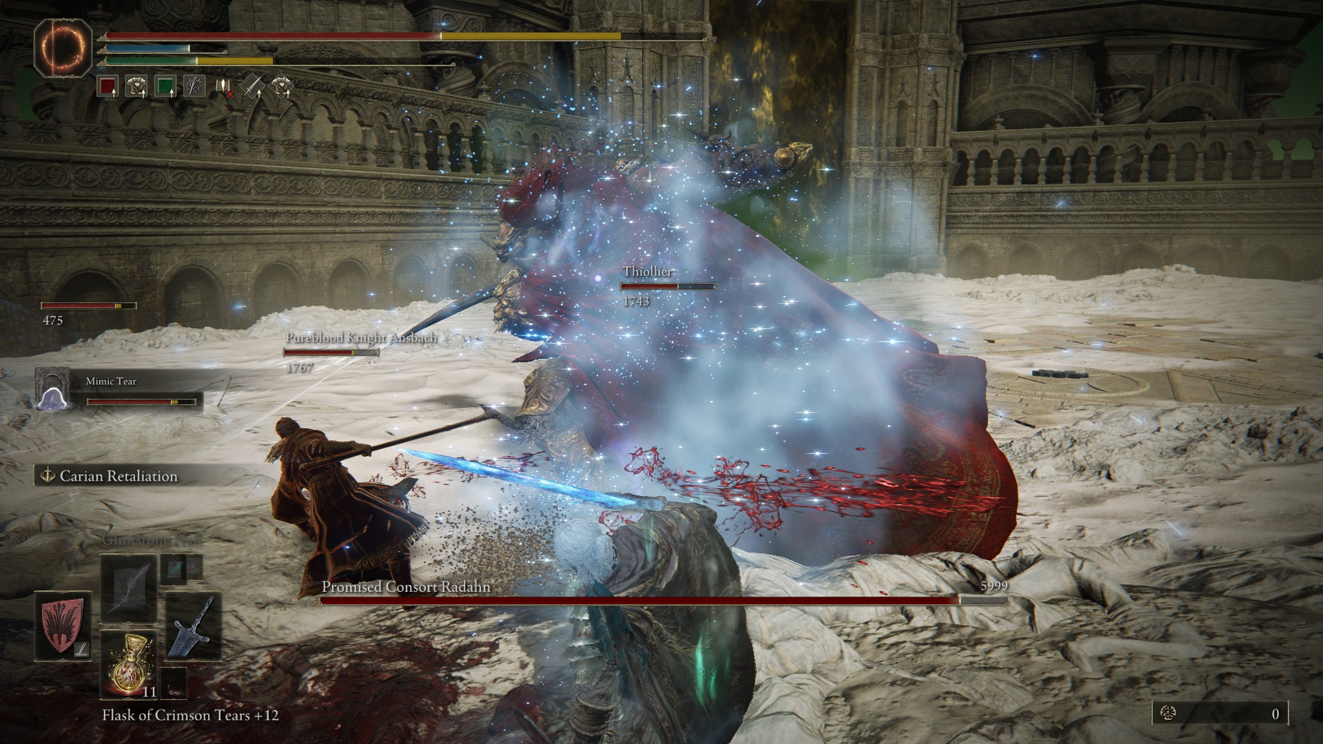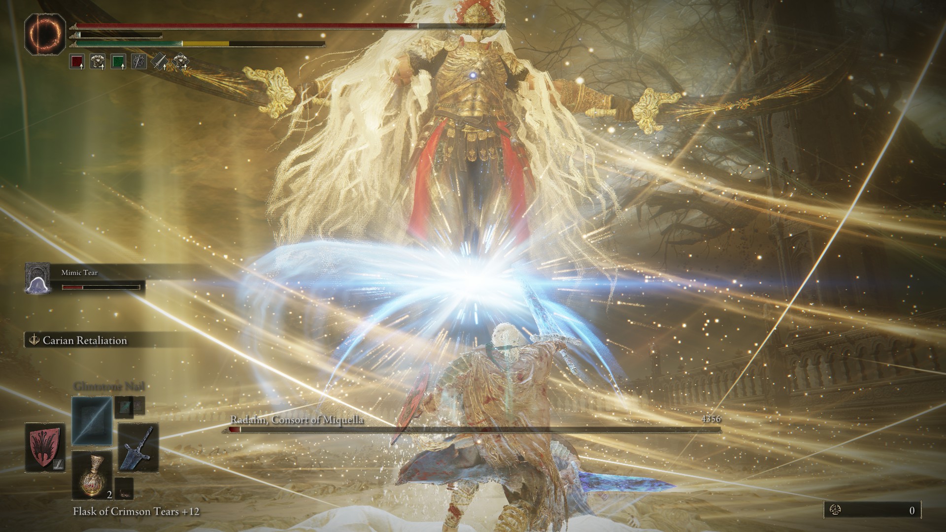 Вот блядь, финальный босс на тру эндинге на Харде в Хадзане будто бы сложнее механически (да и фаз у него аж целых три), но победил я его без призывов, и сражение ощущалось как натуральная заруба не на жизнь, а на смерть, хотя он тоже срал АОЕ атакам по всей карте, но там у тебя персонаж куда подвижнее. А битва с Раданом в конце DLC ощущается как избиение младенцев, и младенцы в данном случае - это мы со Слезой Мимика. Будто бы игра не даёт тебе достаточно средств, чтобы контрить его поносные атаки на всю карту во второй фазе. Даже Guard Counter'ами особо не попользуешься. inb4: Skill issue