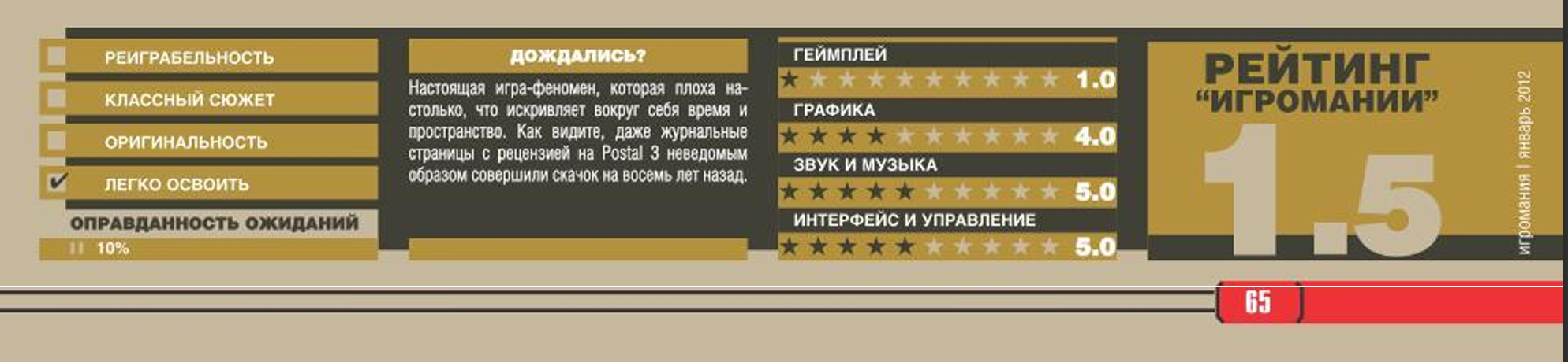 Как же протыки раньше ненавидели наши игры когда еще Российская игровая индустрия была в прайме, щас бы за такую оценку на журнальчик сразу бы выслали налоговую проверку и выебали оборотным штрафом за неуважение к создателям игры