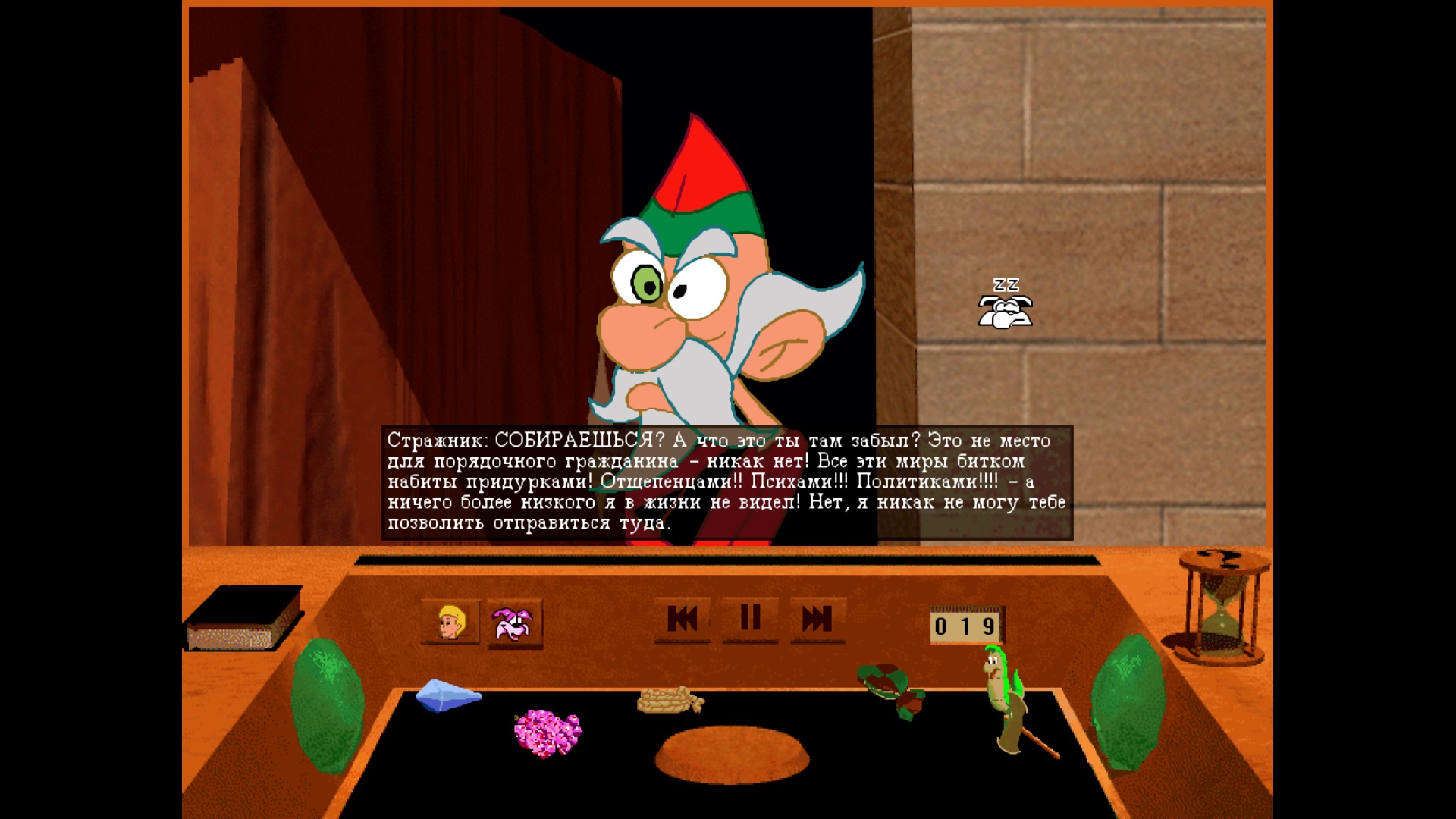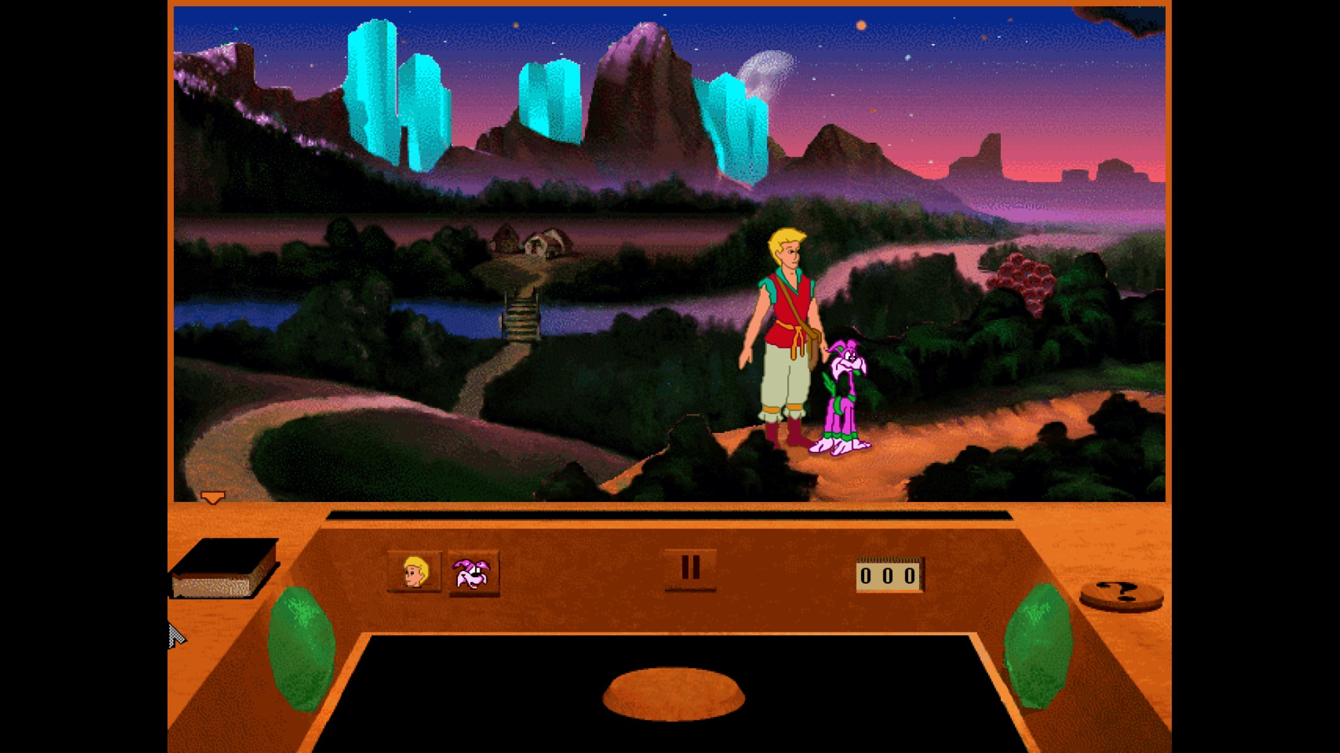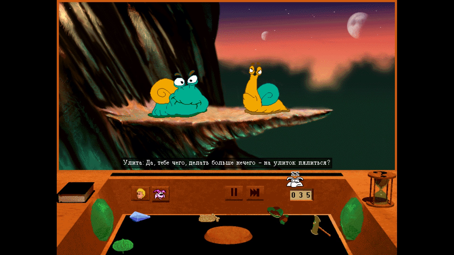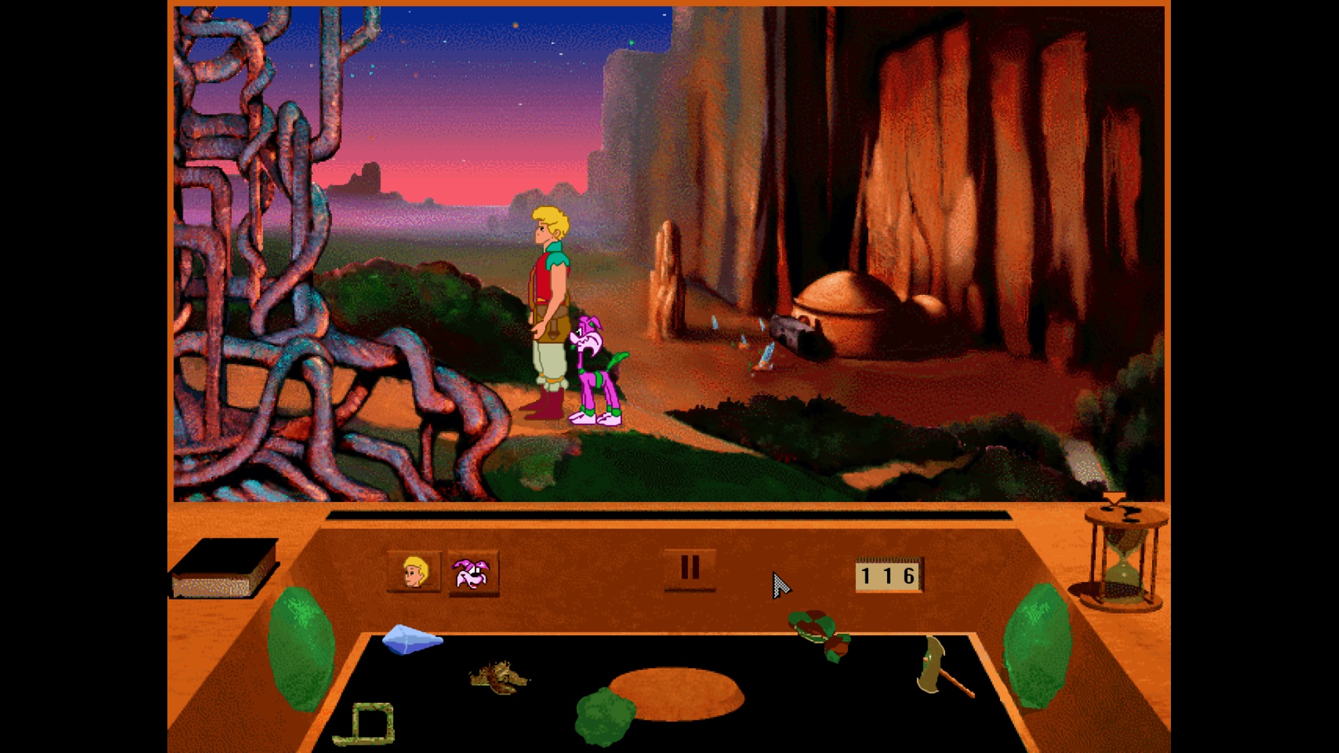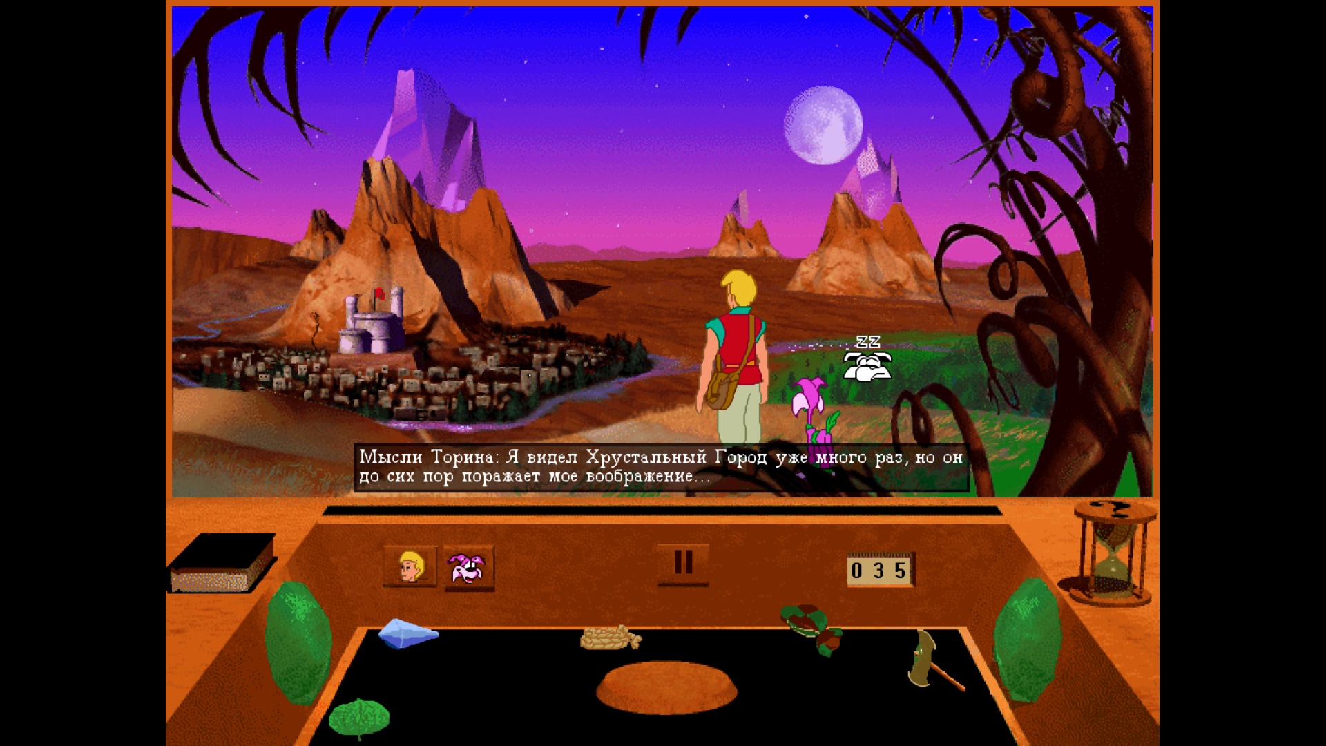 А вот и ещё один старенький квест. Играем за крепыша, у которого злобная колдунья похитила родителей и теперь ему предстоит долгий путь из Горних Сфер в самый центр земли. Прекрасные пейзажи, замечательный юмор и вообще весёлая ненапряжная игра. Русский перевод и озвучка шикарны, жаль, что их не было, когда я впервые в неё поиграл. Графика устаревшая, конечно, и 4:3 смотрится грустно, но тёплые чувства, не угасшие за 30 лет, помогут и сейчас насладиться игрушечкой.