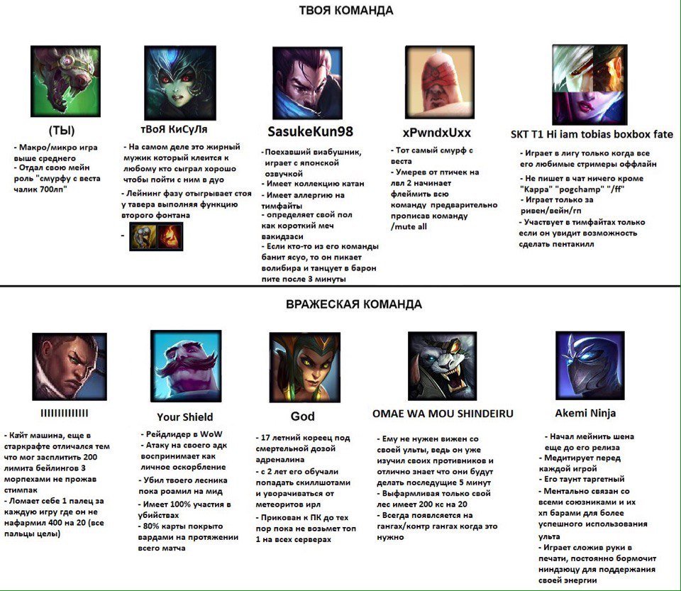 >>10081252 >порядочность надо быть конченым уебищем Просто взять против ясуо фиору на миду Просто пушить т2 на топе вместо того что бы помогать брать нашора. Просто отказаться свапаться лейнами с дуо или трио и как итог они тебе втроем кинут репорт. Просто написать в чат КЕК после пенты.