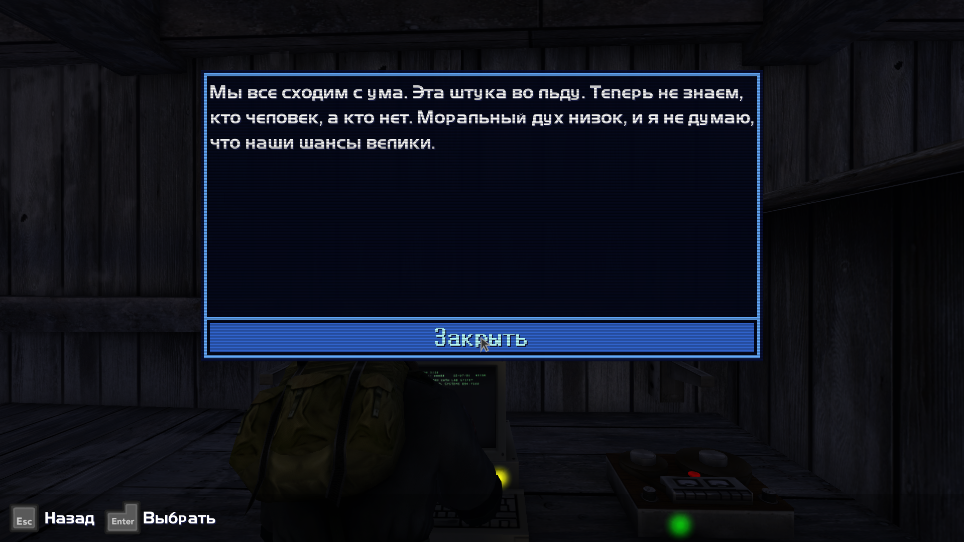 Нахуя каждая дверь на этой базе закрывается на ключи? Те кто проектировал это дерьмо не задумывались, что на морозе лучше оставлять их открытыми, или что замок может тупо замерзнуть при таких температурах и даже с ключем не открыть? Я не понимаю че мне делать хожу вокруг да около. Кажется мы с напарником скоро замерзнем тут нахуй в усмерть.