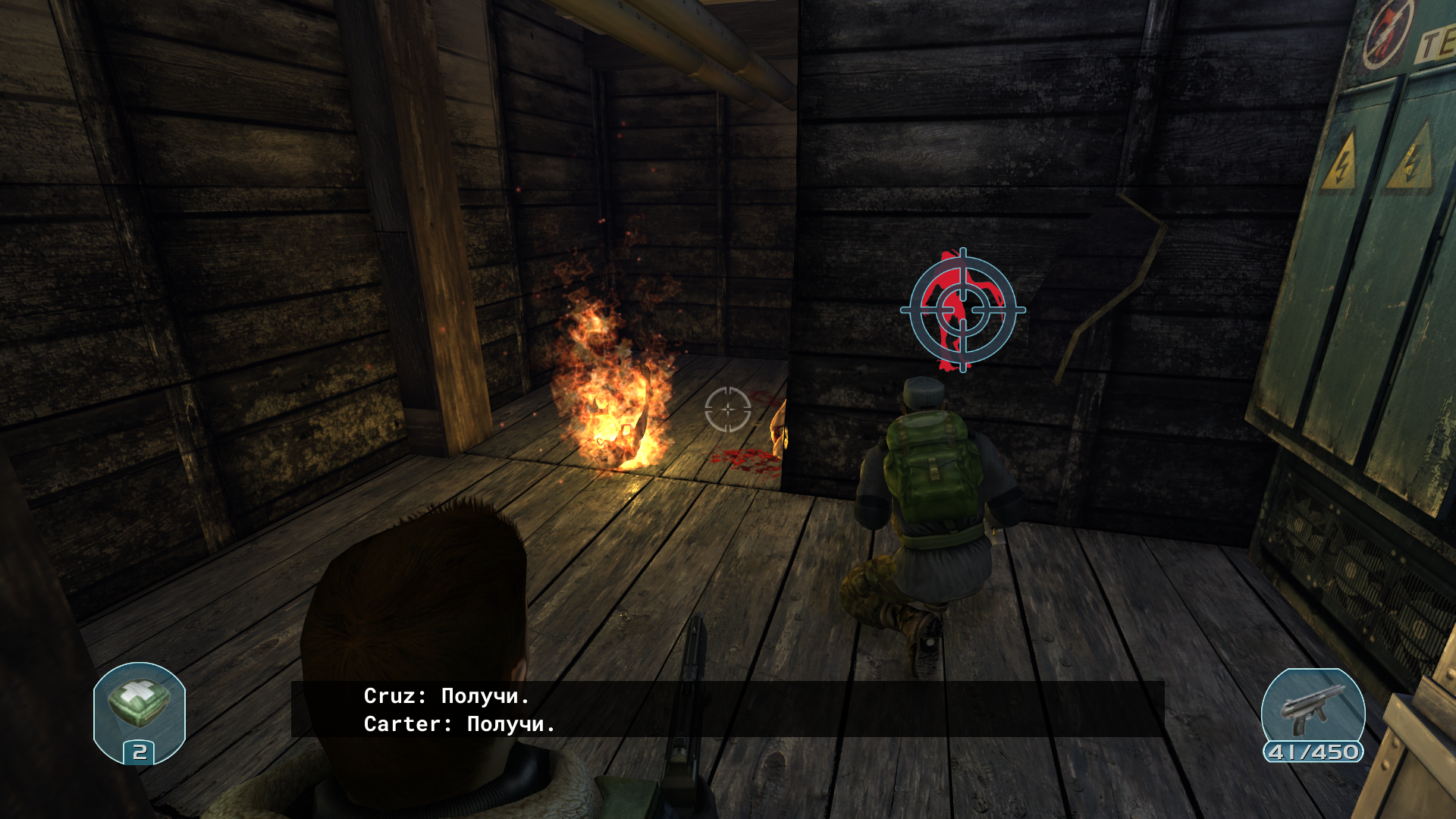 Я смог потушить пожар при помощи огнетушителя, не сразу понял как это сделать. Найдено еще две жертвы. Судя по всему их убил либо мороз, либо те твари. Как показала практика против них хорошо срабатывает огонь, который я дал негру. Комбинация огонь + огнестрел для них смертельна.