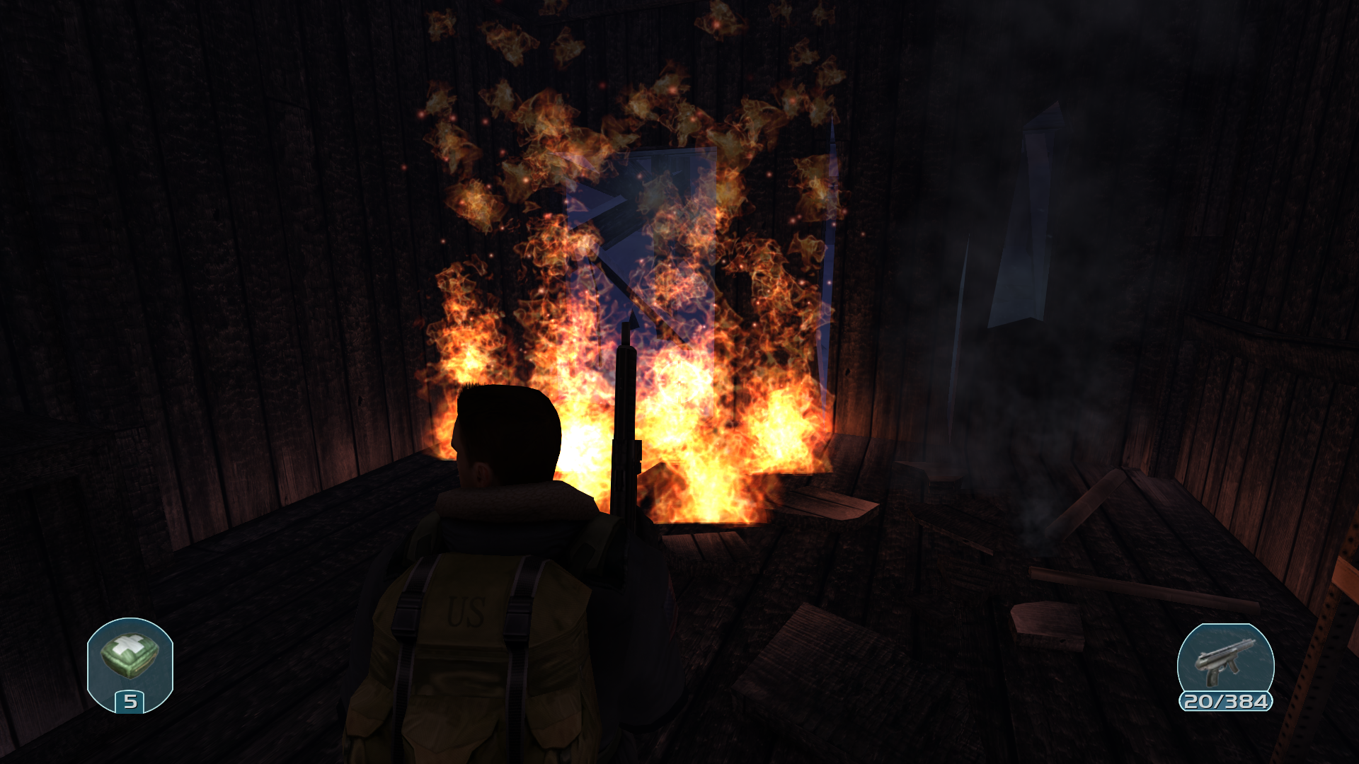Ахуенный геймдизайн тех лет. Я ему отдал свою пушку, так суть в том что забрать я её не могу обратно и другой найти. А нужно мне по бочкам стрельнуть чтоб дальше пройти. Ахуенно