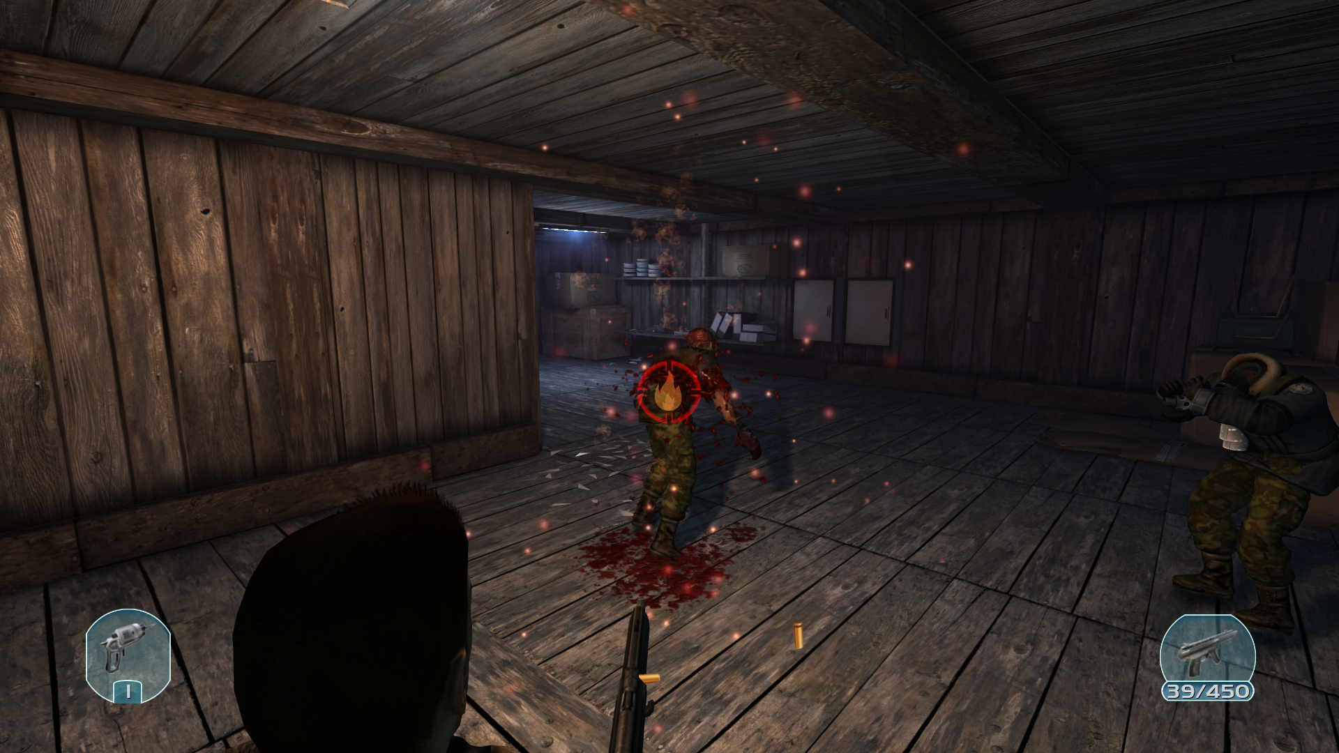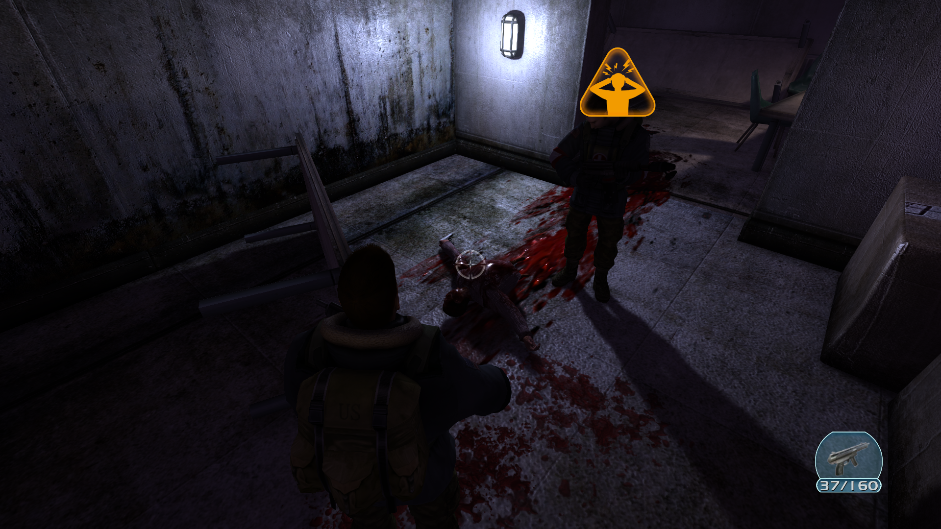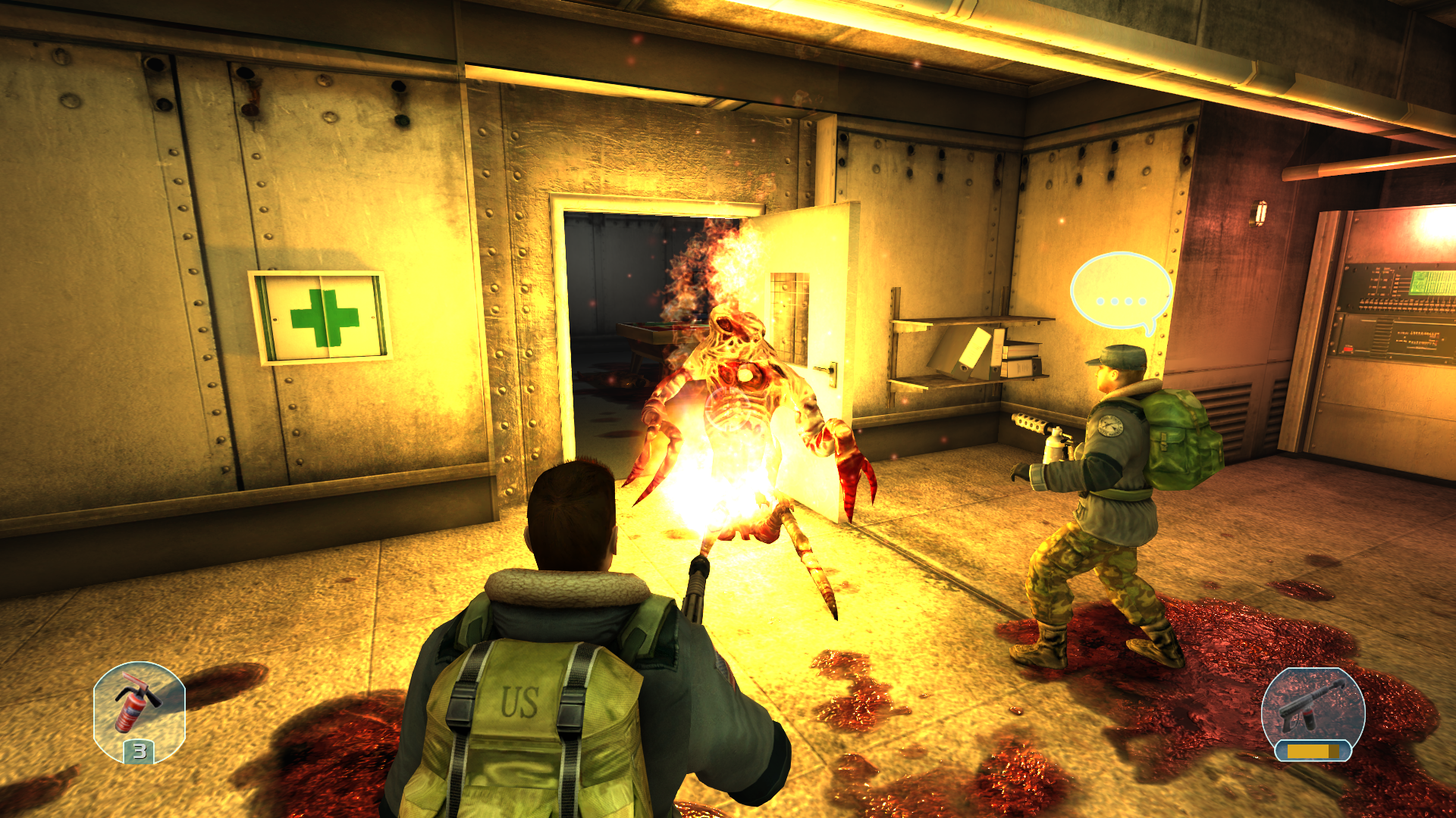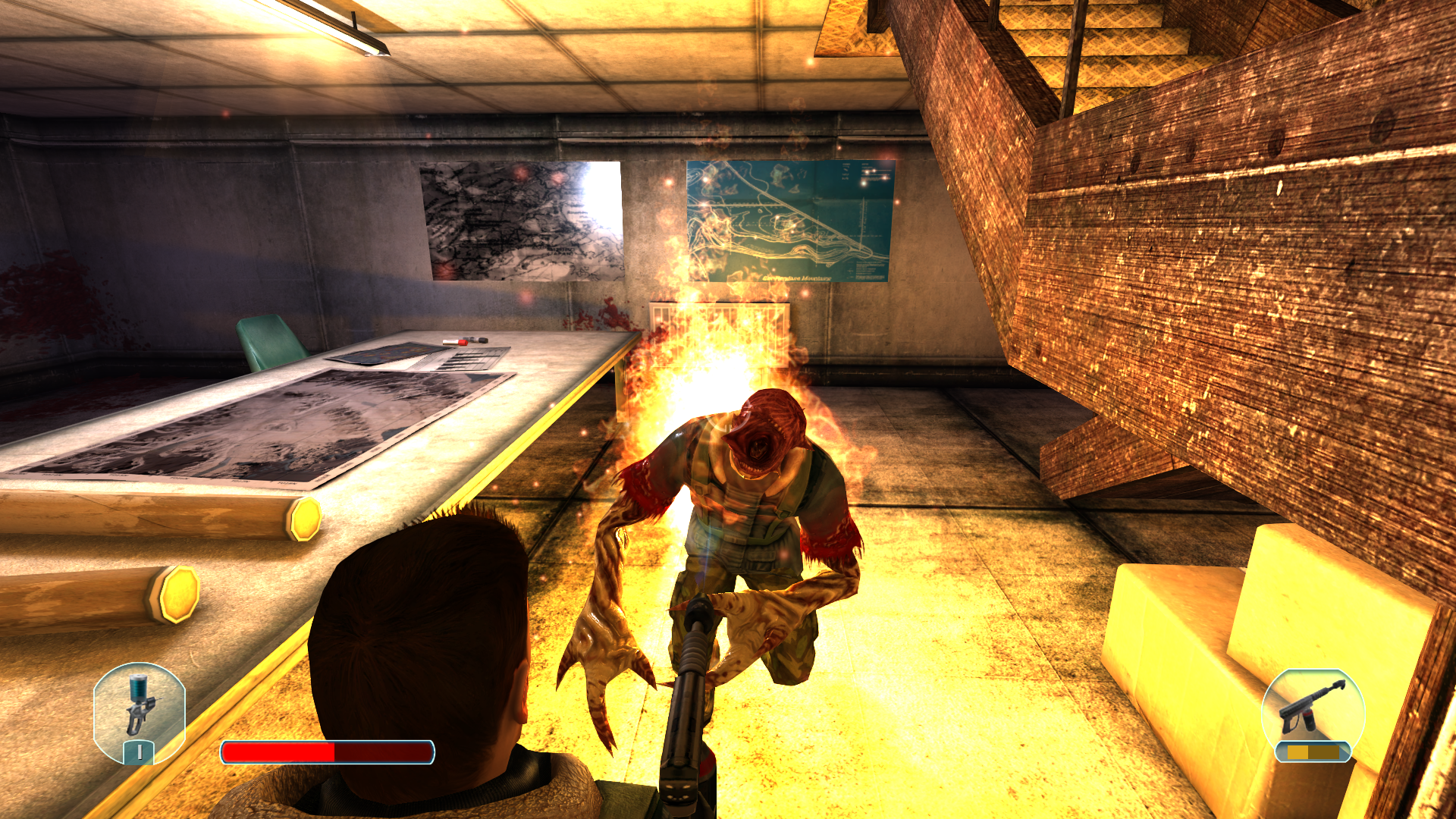 Продвигаясь с напарником и очищая этажи случилось ужасное... На нас напали со всех сторон. Я все еще не могу понять что произошло, но моего напарника смертельно ранили... И это не убило его, он превратился в мразь. И тут появляется два вопроса... Он был давно заражён, или же вирус способен настолько быстро порабощать свою жертву? Не важно, любой из вариантов вызывает дрожь. С боеприпасами проблем нет, теперь мне похуй на выживших, кажется операция по спасению не оправдывает себя, все люди умирают. Приоритет спасти себя.