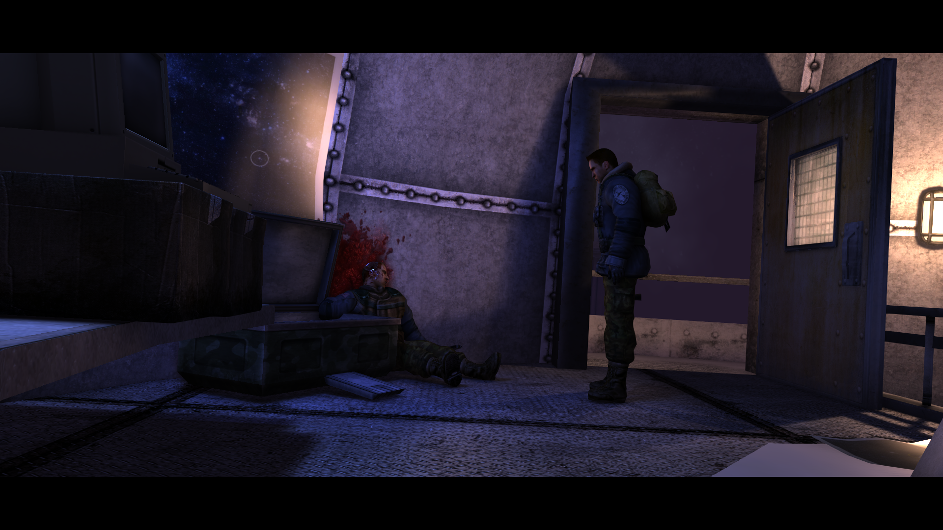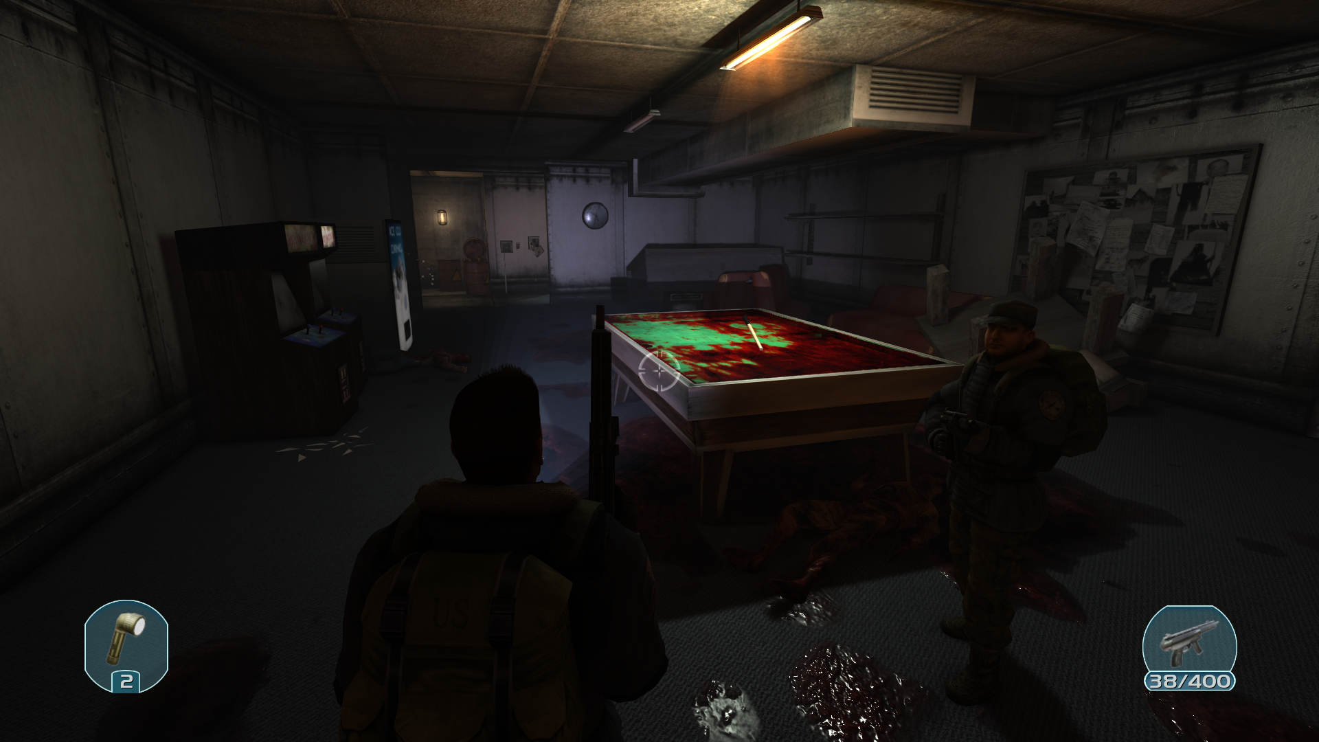 Внутри лабораторного отсека куча записей о неком биологическом вирусе. Наш инженер смог починить проводку, когда включилось освещение нас поверг в шок мертвый распидорасиный труп человека. Двое моих коллег все еще прибывают в ахуе.