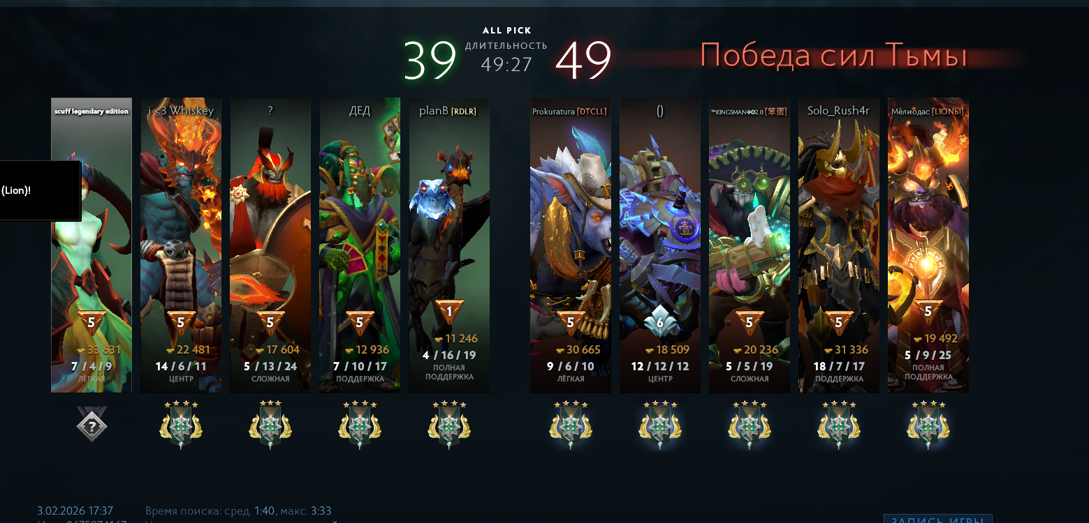 >>10083956 Если честно, то хочется просто спереть на команду. Мы проиграли как только легионка нахуято прыгнула в иллюзию сфа и сдохла, а там все по одному за ней. Ну и у врагов было 100 урона с дуелей, у нашей леги 70. Только висаж старался, остальные хуй пойми что делали.