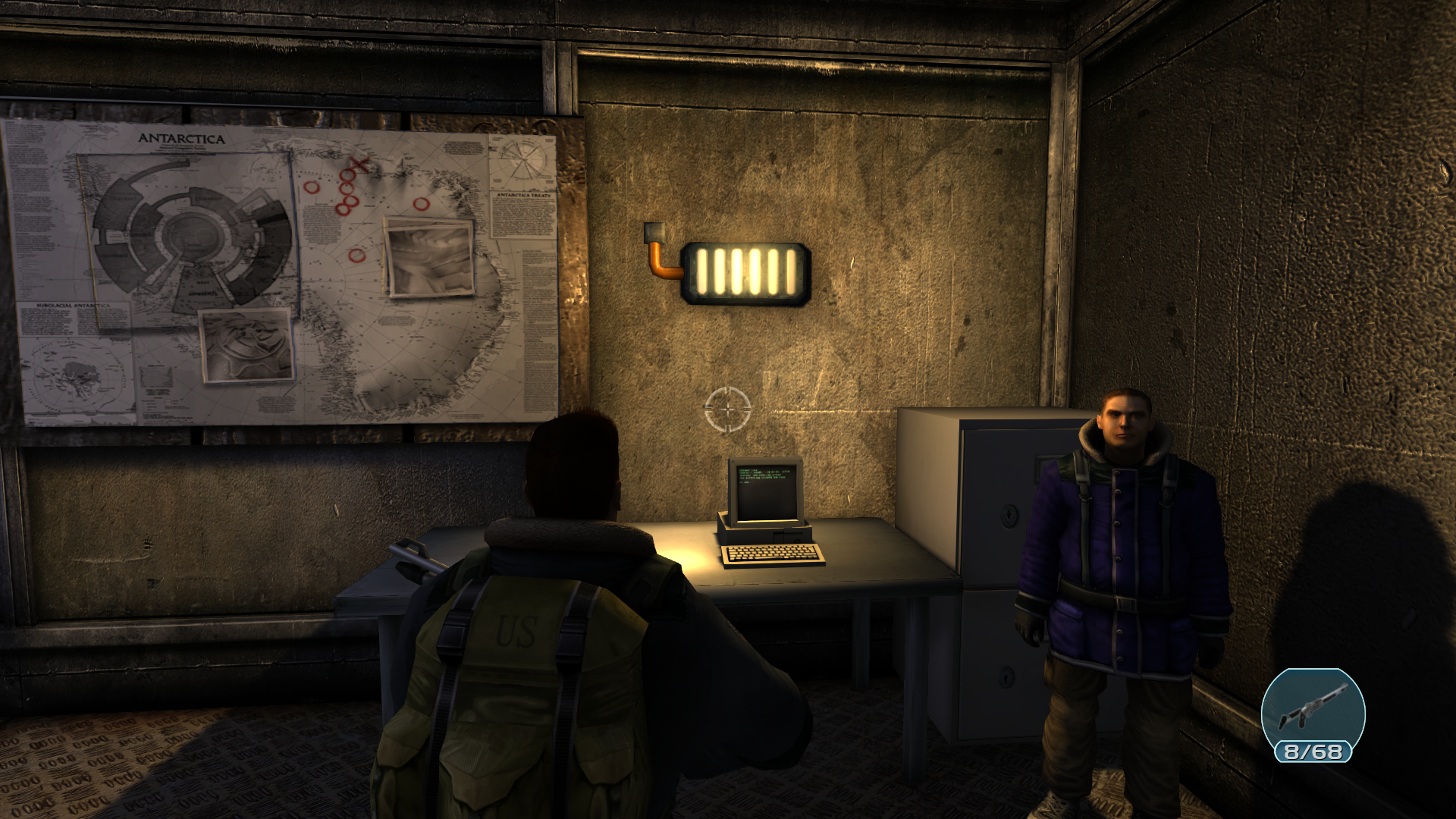 Я и моя команда высадились посреди северного полюса, нам был дан указ найти выживших на этой базе. Судя по всему произошла катастрофа, здания внутри в нестабильном состоянии, проводка и электричество замыкает, возможно последствия бури, выживших еще не довелось встретить, температура достигает до минус пятидесяти, не исключено если кто-то погиб от обморожения. Пробираясь вглубь мы наткнулись на неопознанный объект, похож на инопланетный корабль. Найден ключ он следующего сектора, выдвигаемся.